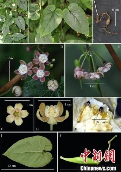 据了解,湖北豹药藤隶属于夹竹桃科鹅绒藤属。鹅绒藤属是一个约含250种植物的世界性大属,系统分类较为复杂。与湖北豹药藤接近的鹅绒藤属植物有美翼杯冠藤、豹药藤、短梗豹药藤以及短柱豹药藤,但与它们相比,湖北豹药藤呈现果实略有棱,花序梗较短,花冠裂片平展、卵形、白色至淡红色,茎无叶片状托叶等特点。