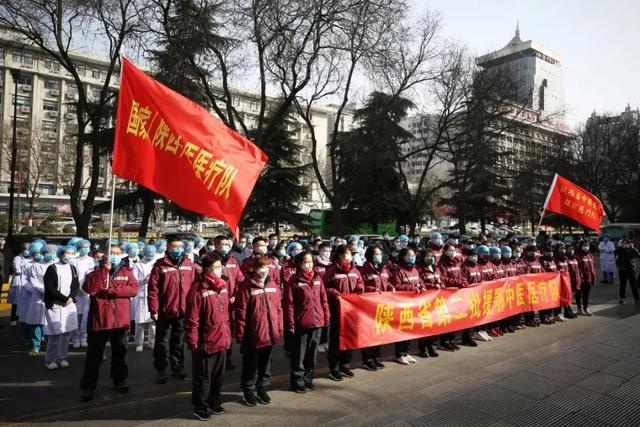 2020年2月21日陕西中医医疗队队员出发前与亲友、同事合影告别
