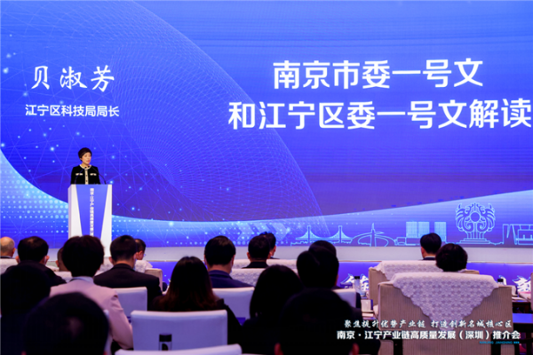 当天的推介会上,江宁区商务(投促)局相关负责人推介江宁区投资环境,江宁区科技局相关负责人解读南京市委 1 号文和江宁区委 1 号文,为客商们精心描绘江宁火热发展的现实模样,让他们深度感知江宁的诚意,来江宁投资兴业。