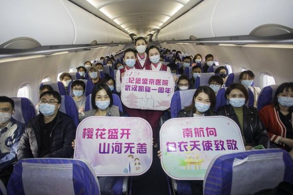 3月25日,作为去年辽宁援鄂重症医疗队成员,中国医科大学附属盛京医院的49名医护人员重回武汉,共赴“樱花之约”。而当天,一场双方都“有心理准备”的老友相见场面,在南航CZ6519航班上,提前上演。