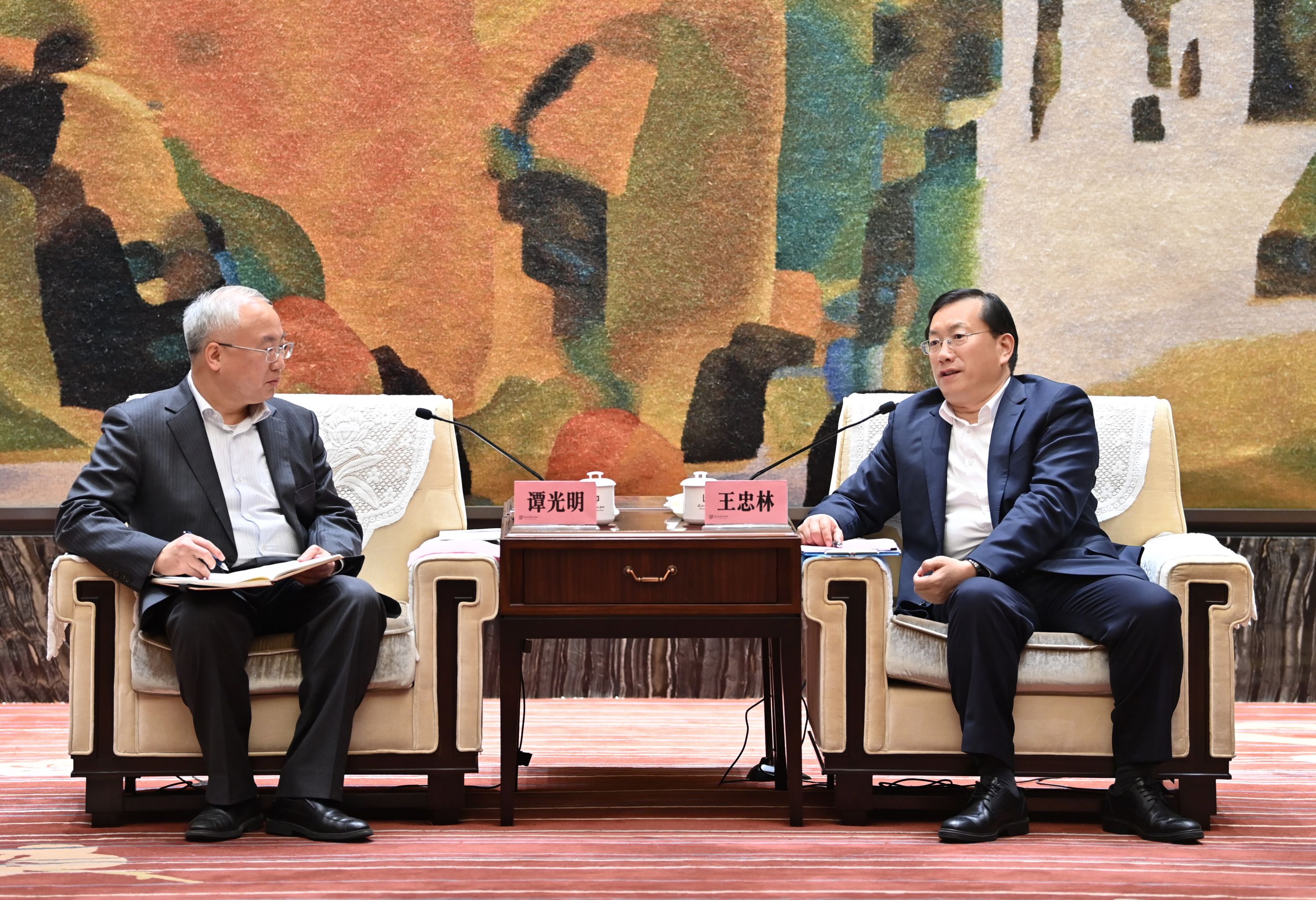王忠林代表市委、市政府对谭光明一行表示欢迎,感谢中国铁投对武汉经济社会发展的长期支持,特别是在武汉疫后重振的关键时期,推动长江沿岸铁路集团股份有限公司总部落户武汉。他说,武汉区位条件优越,被誉为“中国的立交桥”。近年来,随着铁路建设的发展,武汉交通枢纽优势进一步巩固,也为下一步发展提供了有力支撑。我们将抢抓机遇,围绕构建“超米字型”高速铁路网,通过基金引导等方式,加快打造铁路客货运“双枢纽”城市,努力在服务和融入新发展格局上展现更大作为。希望中国铁投继续响应党中央“搭把手、拉一把”号召,关心支持武汉高速铁路网建设。我们将做好对接服务、创造一流环境,全力以赴支持中国铁投在武汉的发展。