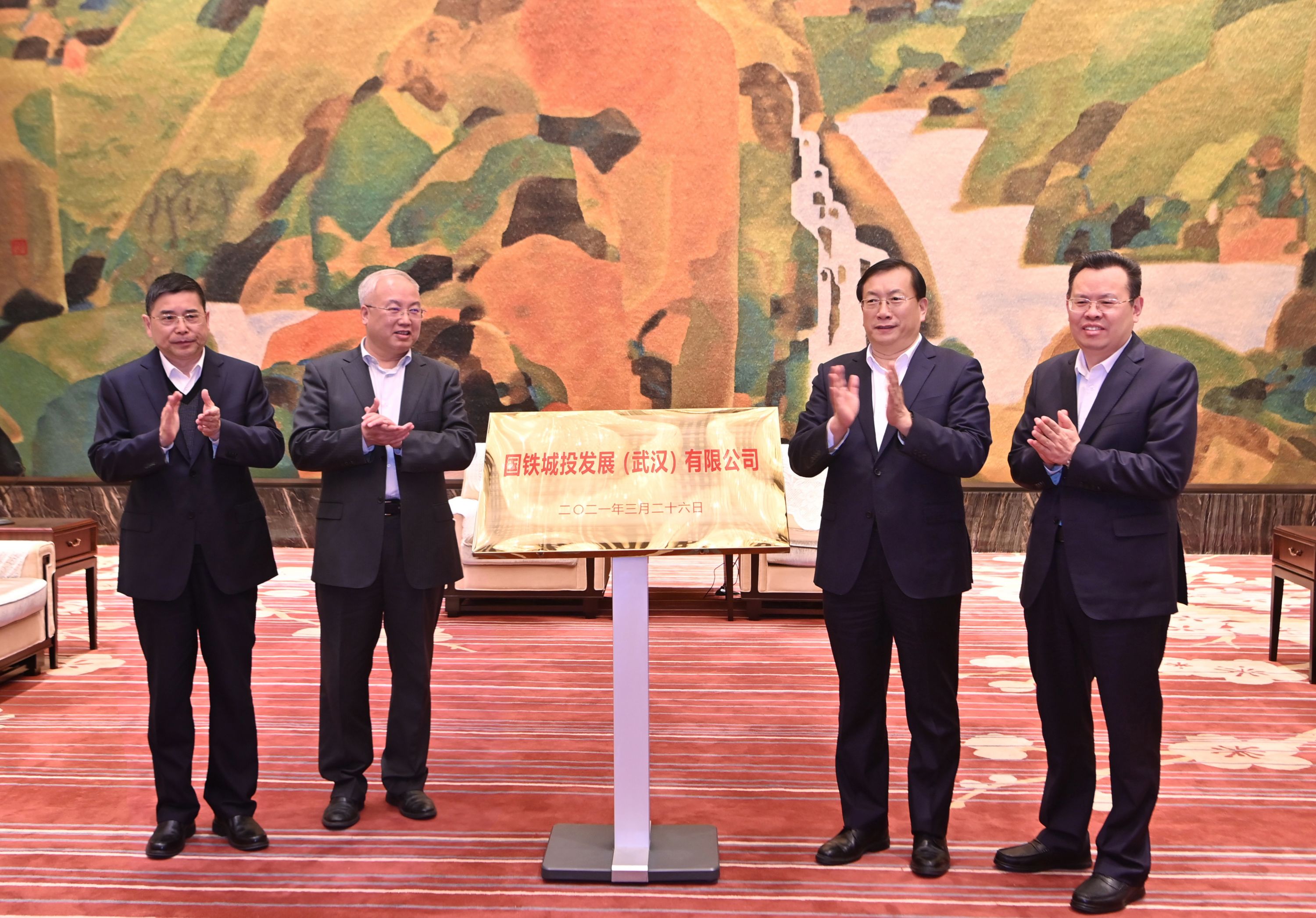 同日,国铁城投发展(武汉)有限公司在汉揭牌,由中国铁投所属企业与武汉市城投集团共同出资组建,将全面启动武昌区滨江核心区、汉阳区长江城杨泗港等地块综合开发工作,重点推动武汉西站、武汉天河站等枢纽车站站城一体化开发和铁路沿线土地综合开发,实现站城融合和新型城镇化发展。