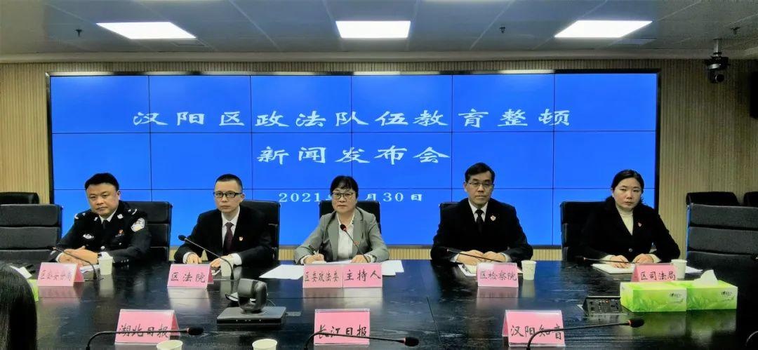 3月30日,汉阳区召开政法队伍教育整顿新闻发布会,贯彻落实中央、省市关于开门整顿的要求,向社会公开教育整顿学习教育阶段的工作情况,接受社会监督。
