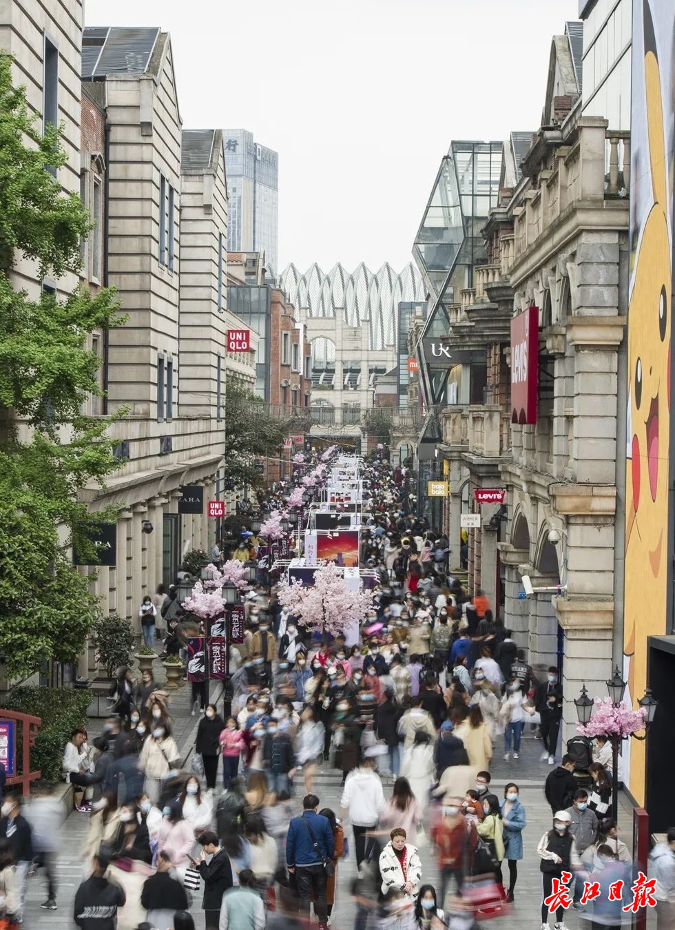 清明小长假,汉街游人如织。记者胡冬冬 摄