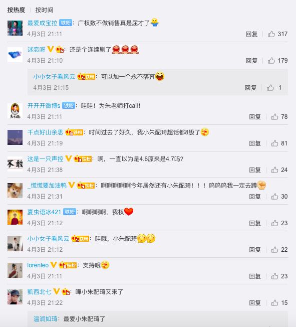 “小朱配琦”组合一战成名后,网友们一直呼唤两人再次合体。还有粉丝专门为他俩建了超话,喊话“第三季什么时候上新?”“期待小朱配琦第三季”。