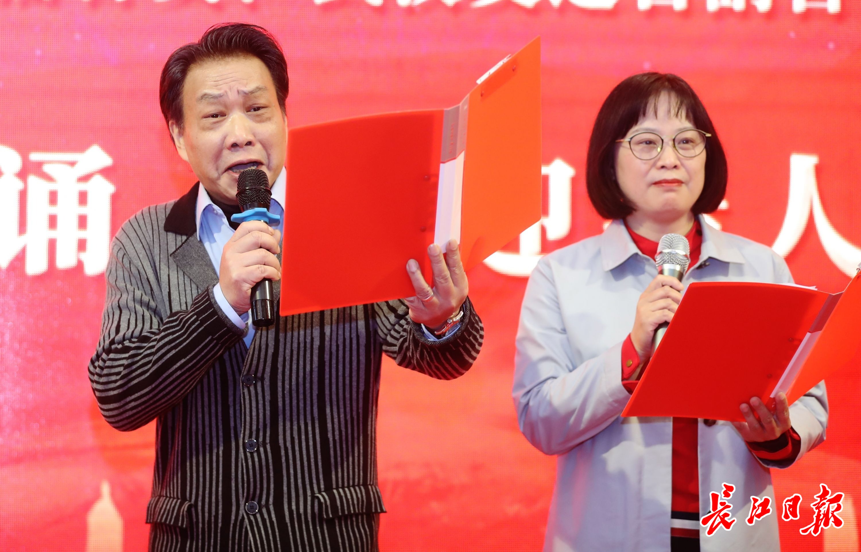 配乐诗朗诵《欢迎亲人回家来》。 长江日报记者何晓刚 摄