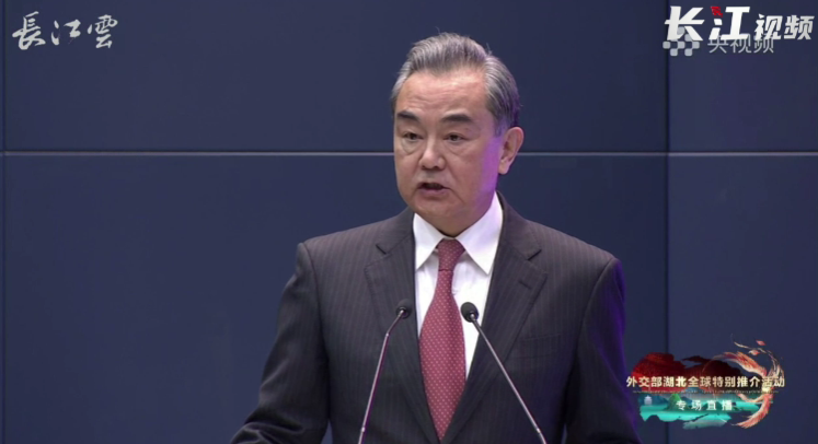 4月12日下午,“英雄的湖北:浴火重生,再创辉煌”湖北全球特别推介活动在外交部蓝厅举行,国务委员兼外交部长王毅出席并致辞。
