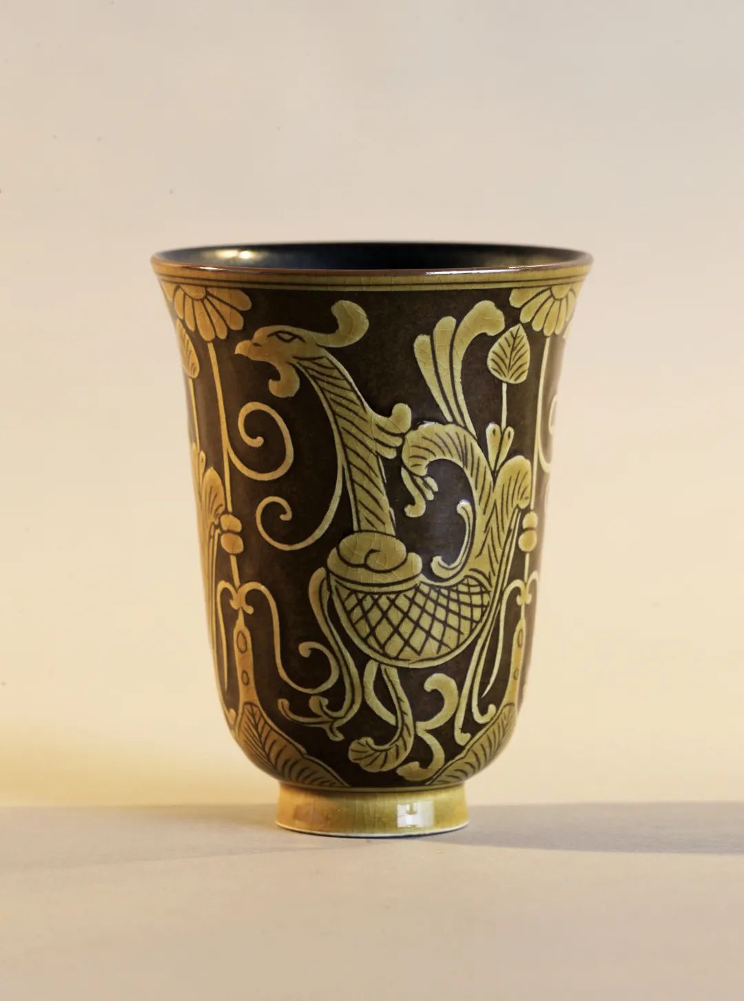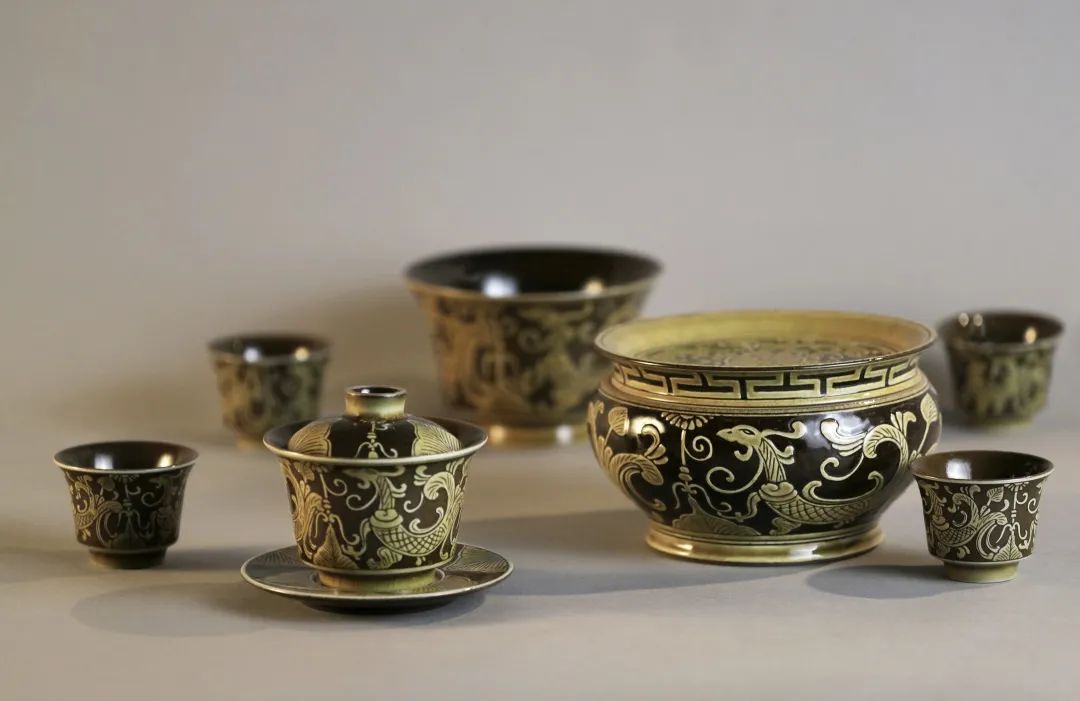 以手工拉坯成型,着以鳝鱼黄釉色,在器物表面剔花形成楚地传统代表凤纹装饰图案。图片来源:湖北日报