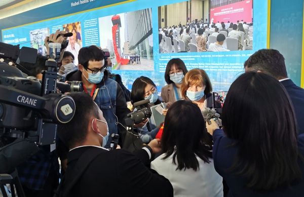 爱尔兰驻华大使安黛文步入湖北推介活动会场时被记者们打围。长江日报驻京记者柯立 摄