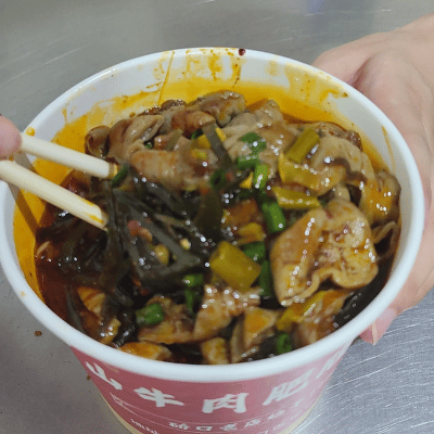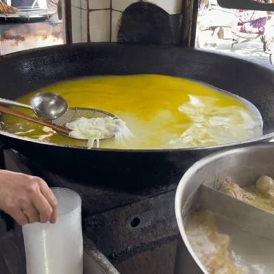 隔壁的骏骏牛肉粉硚口老店绝对不能错过。店门口熬着汤底的大锅搭配着大块的牛骨,这场面绝对引人注目。卤好的牛肉配着红油,香辣入味,再嗦一口劲道的粉条,味道让人赞不绝口。一定要配上他家炸好的面窝,酥脆的面窝泡在粉里,才是真香。