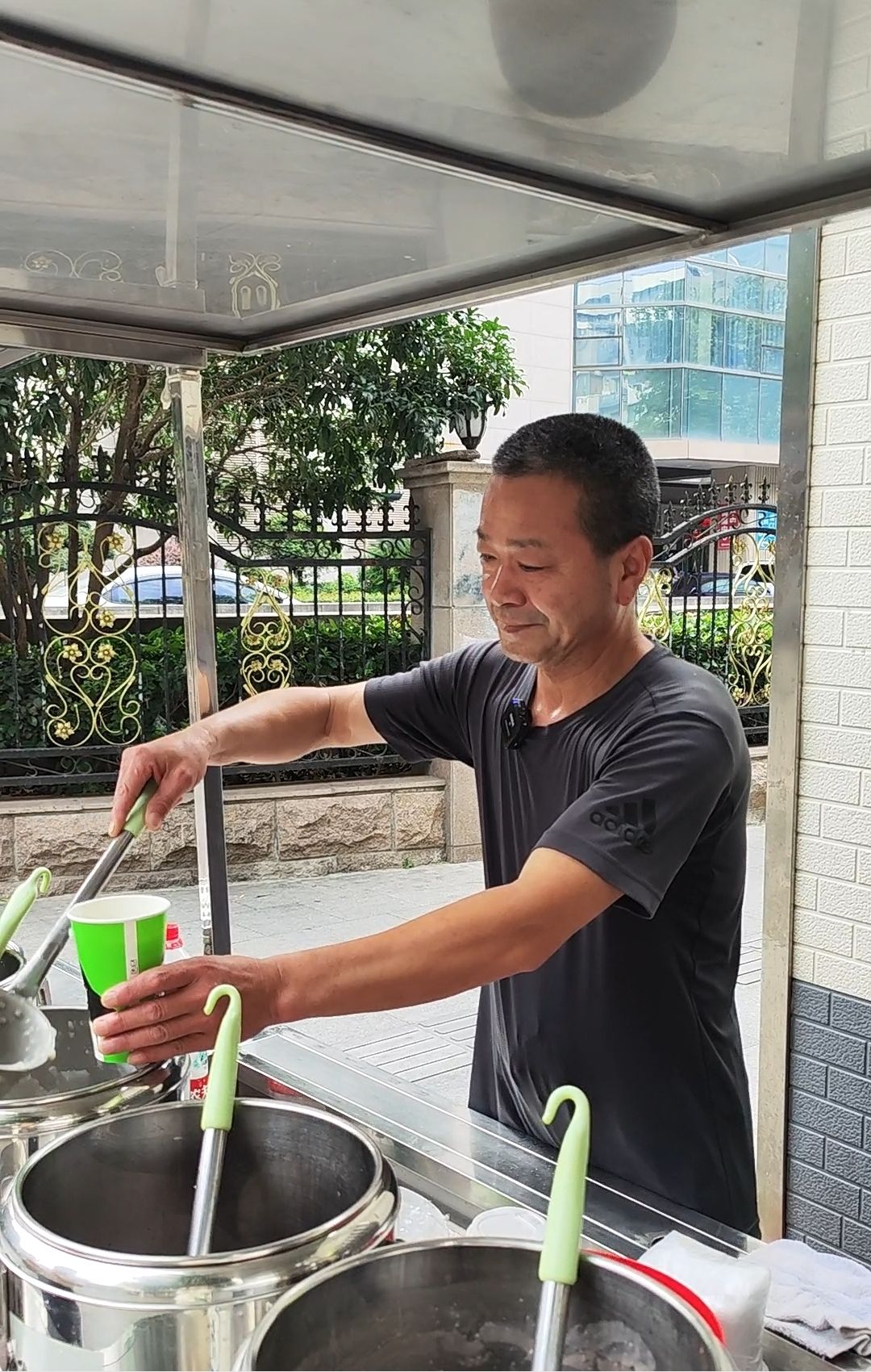 为了熬得一锅好粥,余飞往往凌晨一点半就起床开始准备了。从用料到火候再到时长的把控,耐心又细致。煮好后,凌晨五点就出摊了。