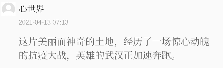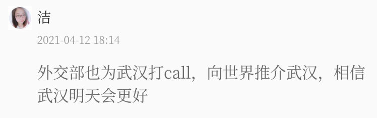 很多网友看了报道后,在“大武汉”客户端留言:英雄之城欢迎全世界朋友来访,武汉明天会更好!