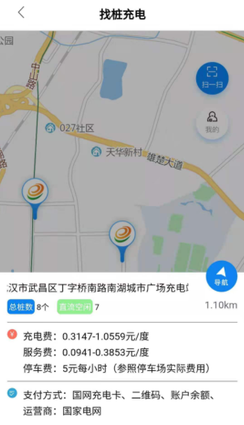 据武汉供电公司客服人员介绍,查询国家电网汽车充电站地址及相关信息可通过网上国网APP,里面可以查询到全市国家电网运营的充电设施情况。长江日报记者登录网上国网后,通过电动车—找桩充电栏很快查询到周边国家电网汽车充电站的信息,上面不仅显示了充电费用、停车费用,还标明了额定功率、额定电压、直流桩以及是否空闲、是否离线等信息,可谓一目了然。
