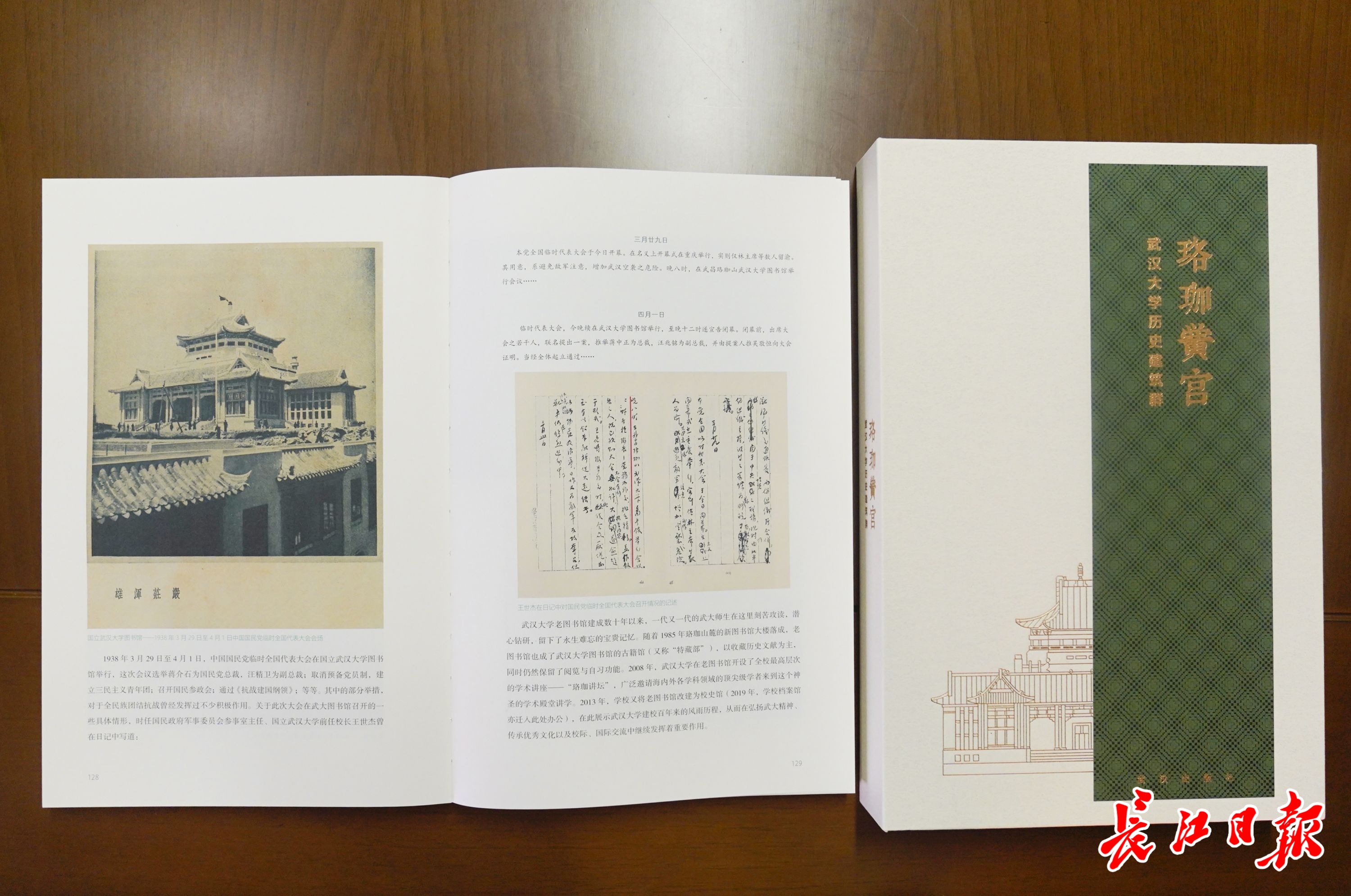 10月14日,由武汉出版社出版的《珞珈黉宫——武汉大学历史建筑群》新书首发式在武汉中心书城举行,该书编写单位、武汉大学档案馆馆长席彩云介绍,历经近百年风雨沧桑,武汉大学大部分早期校园建筑至今仍保存完好,大量有关这批近代建筑的珍贵历史照片、文书档案与建筑图纸也保留了下来。武汉大学档案馆依托馆内珍藏的各类历史档案、建筑图纸、报刊资料,以及若干当事人的回忆录等基本史料,组织编写《珞珈黉宫——武汉大学历史建筑群》一书,以求为这所全国最美大学留下一段宝贵的历史记忆。