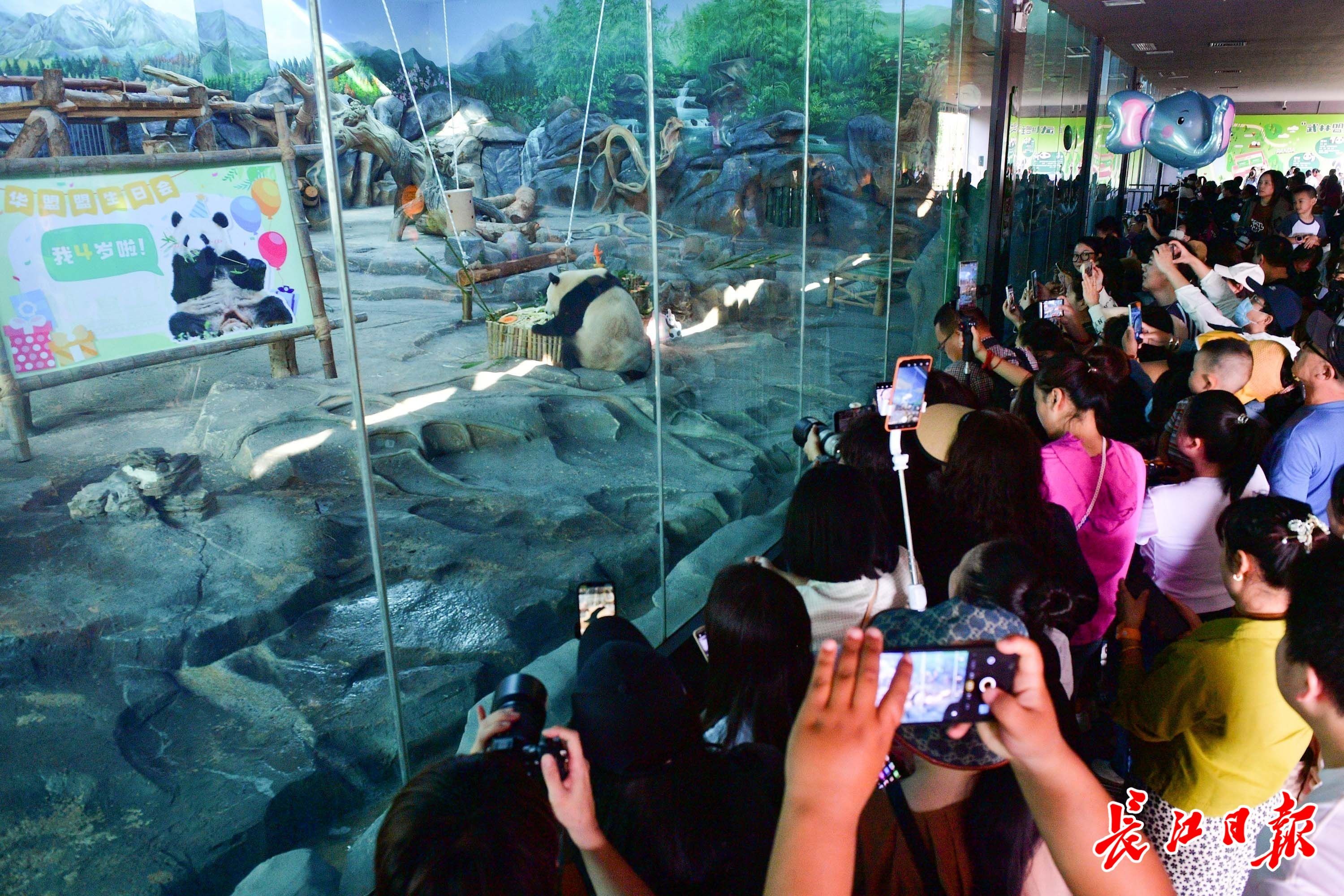 见证大熊猫品尝汉味“长寿面”,近距离观察大熊猫的粪便,制作和张贴科普提示牌……10月17日,大熊猫“盟盟”在武汉动物园迎来4岁生日。为了让公众更加了解大熊猫的生活习性,传播科普知识并倡导游客文明游园,武汉动物园开展了一场温馨有趣的生日会。