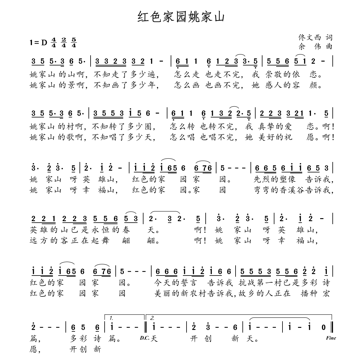 《红色家园姚家山》是一首传承红色基因的原创歌曲,由佟文西作词,余伟作曲。歌曲将姚家山看作英雄山、幸福山,唱响了红色家园、美丽新农村,以及英雄人民的蓬勃活力和昂扬风采。