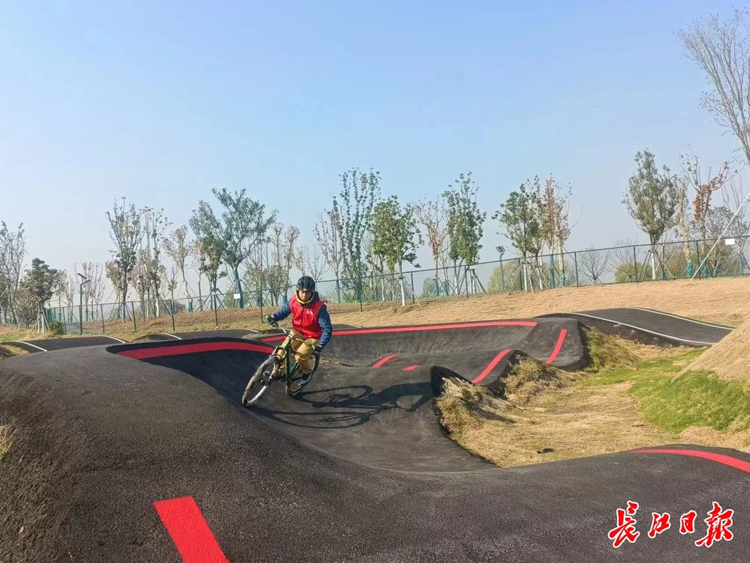 新建成不久的梧桐雨体育公园轮上运动中心,占地约16000平方米,内含沥青泵道、水泥板场等多种运动场地,可供多项极限运动使用。轮上运动中心负责人曾静冬介绍,泵道是通过起伏变化的土坡,借助动能和势能来回转换,不用踩踏就能骑完全程的环形赛道,是适合轮滑、滑板、小轮车、平衡车和山地自行车等轮式驱动项目,武汉已有一批极限运动爱好者参与其中。
