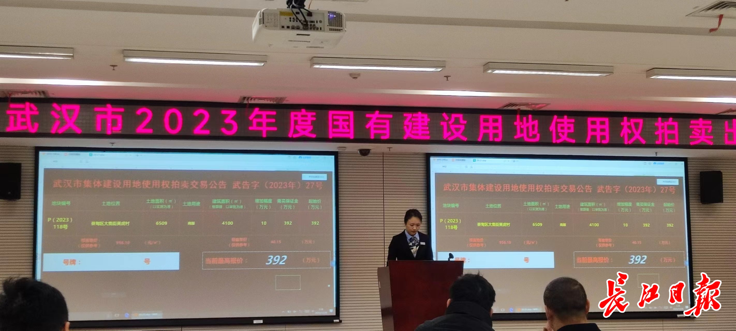 12月26日,在市民之家拍卖大厅内,蔡甸区大集黄虎村集体经营性建设用地使用权出让,通过拍卖方式,以392万元总价成交,总用地面积6509平方米(折合9.76亩),规划用途为商业用地(农文旅产业配套设施)。