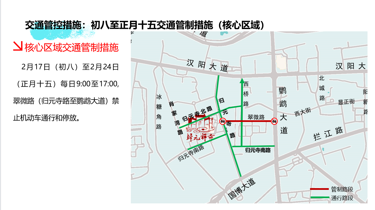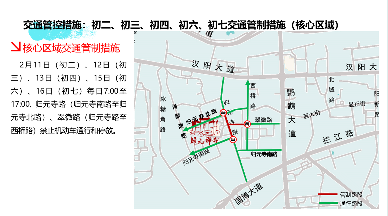 ●春节期间,归元寺周边部分道路实行临时交通组织措施