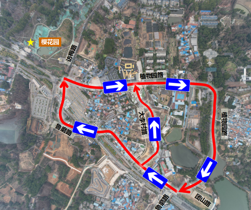 1、鲁磨路(团山路至植物园路)实行机动车由东向西(团山路往植物园路方向)单向通行。