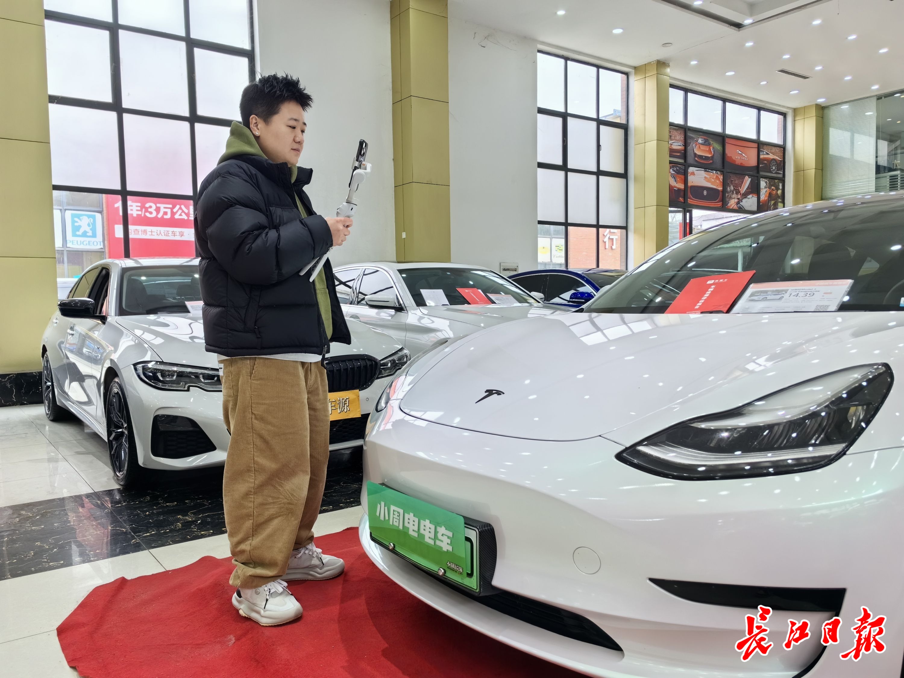 周梦洁正在拍摄汽车讲解视频。 记者覃柳玮 摄