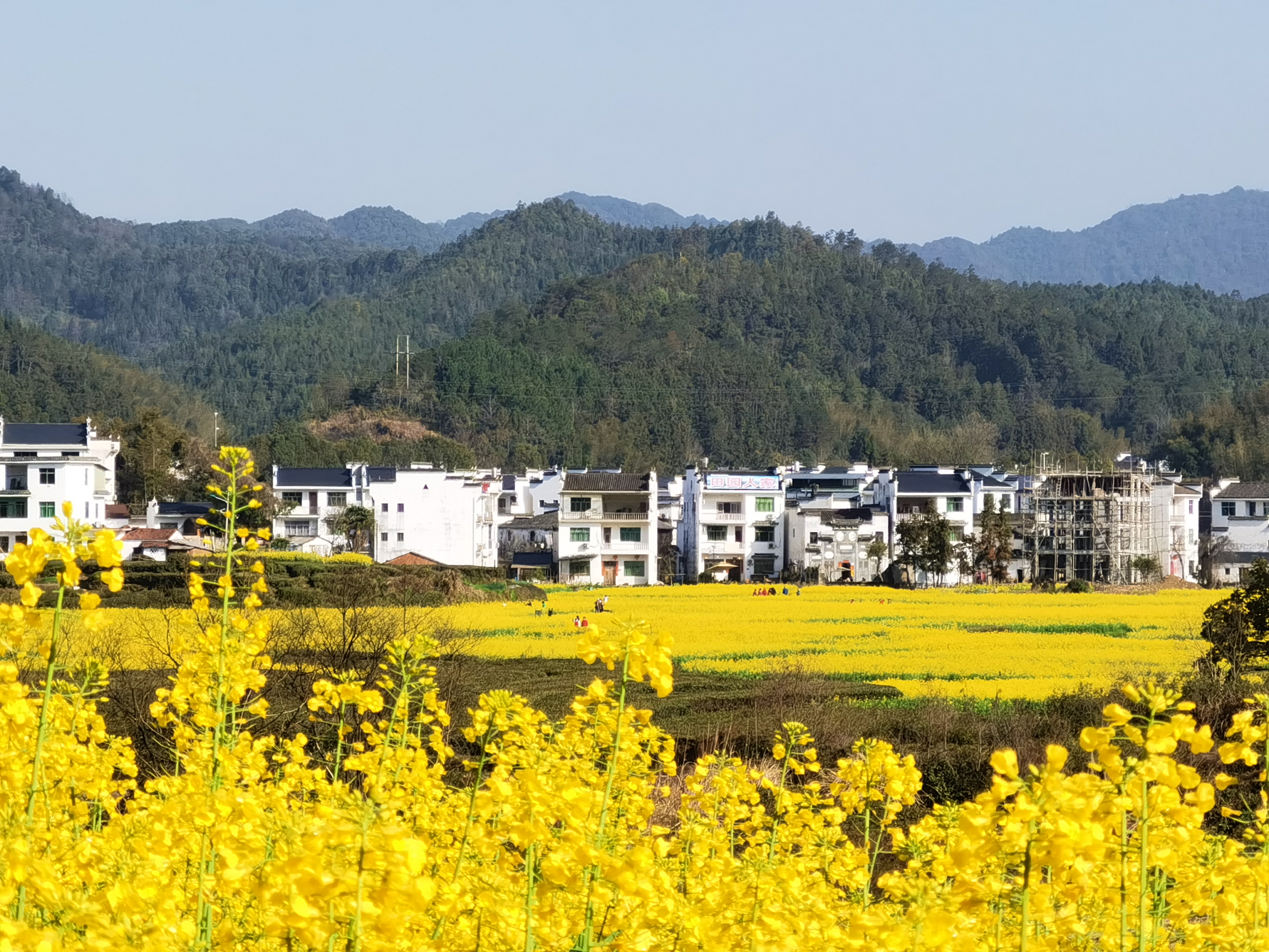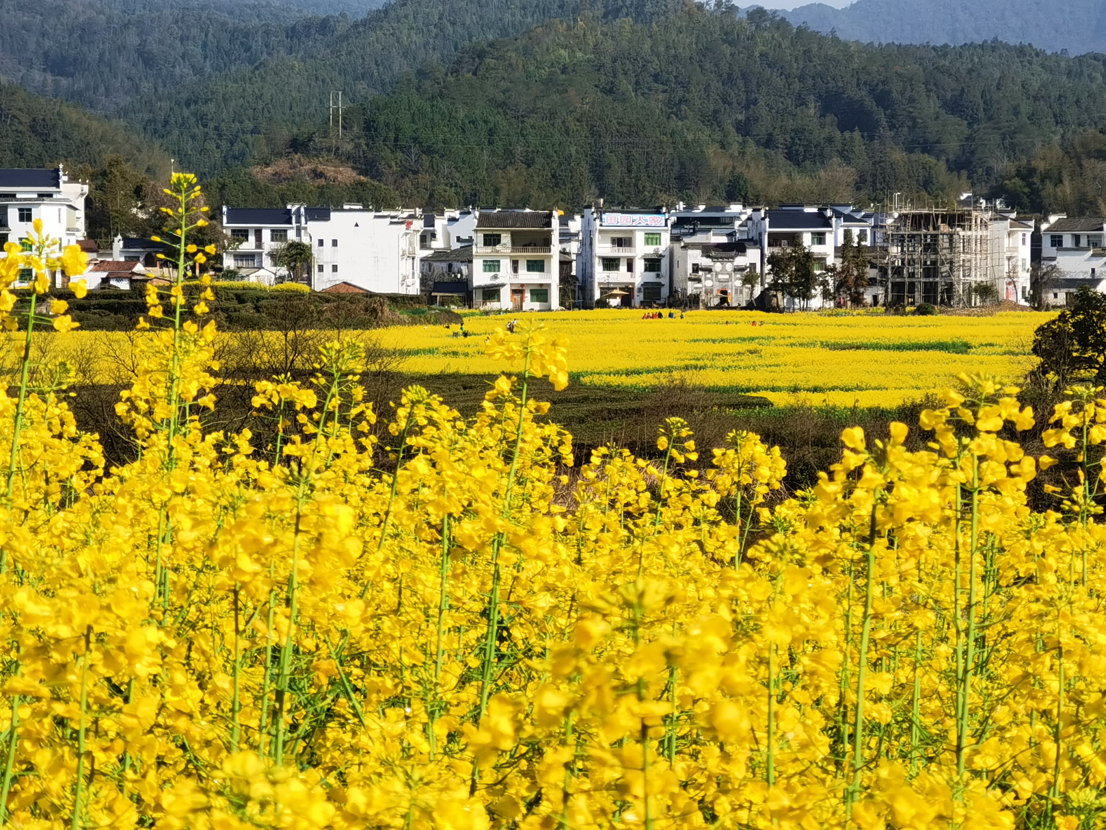 油菜花开春益深,又到了一年赏花季。3月20日,“中国最美乡村”江西婺源县秋口镇王村石门自然村500亩油菜花正值盛放期,“林梢烟似带,村外水如环”,位于婺源饶河源国家湿地公园里的千年古村石门村,粉墙黛瓦的细腻工笔与油菜花的泼墨金黄交相辉映,宛如山水画卷。