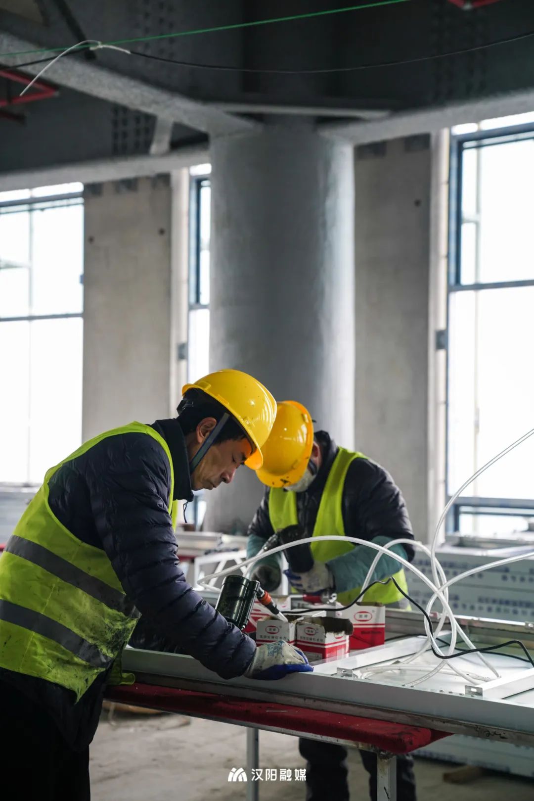 △项目施工现场,工人们繁忙工作场景。