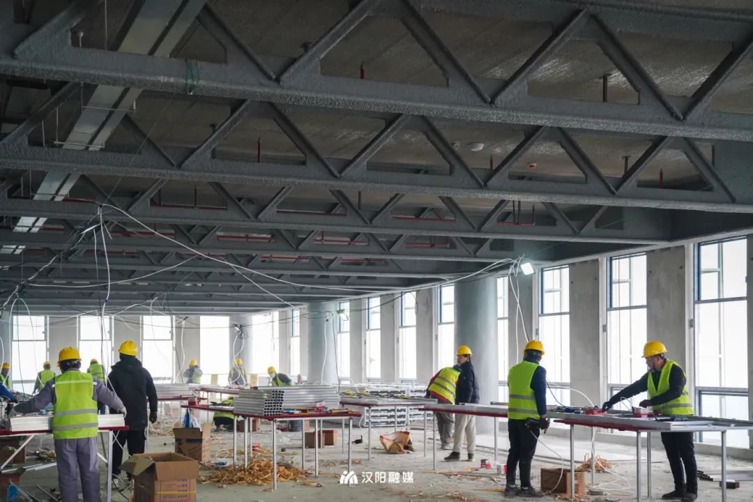 在中南科研设计中心项目建设现场,数百名工人正开足马力忙施工,切割机器轰鸣、货梯上下运转载货,大家以“时不待我”的姿态,抢抓进度,跑出项目建设“加速度”。