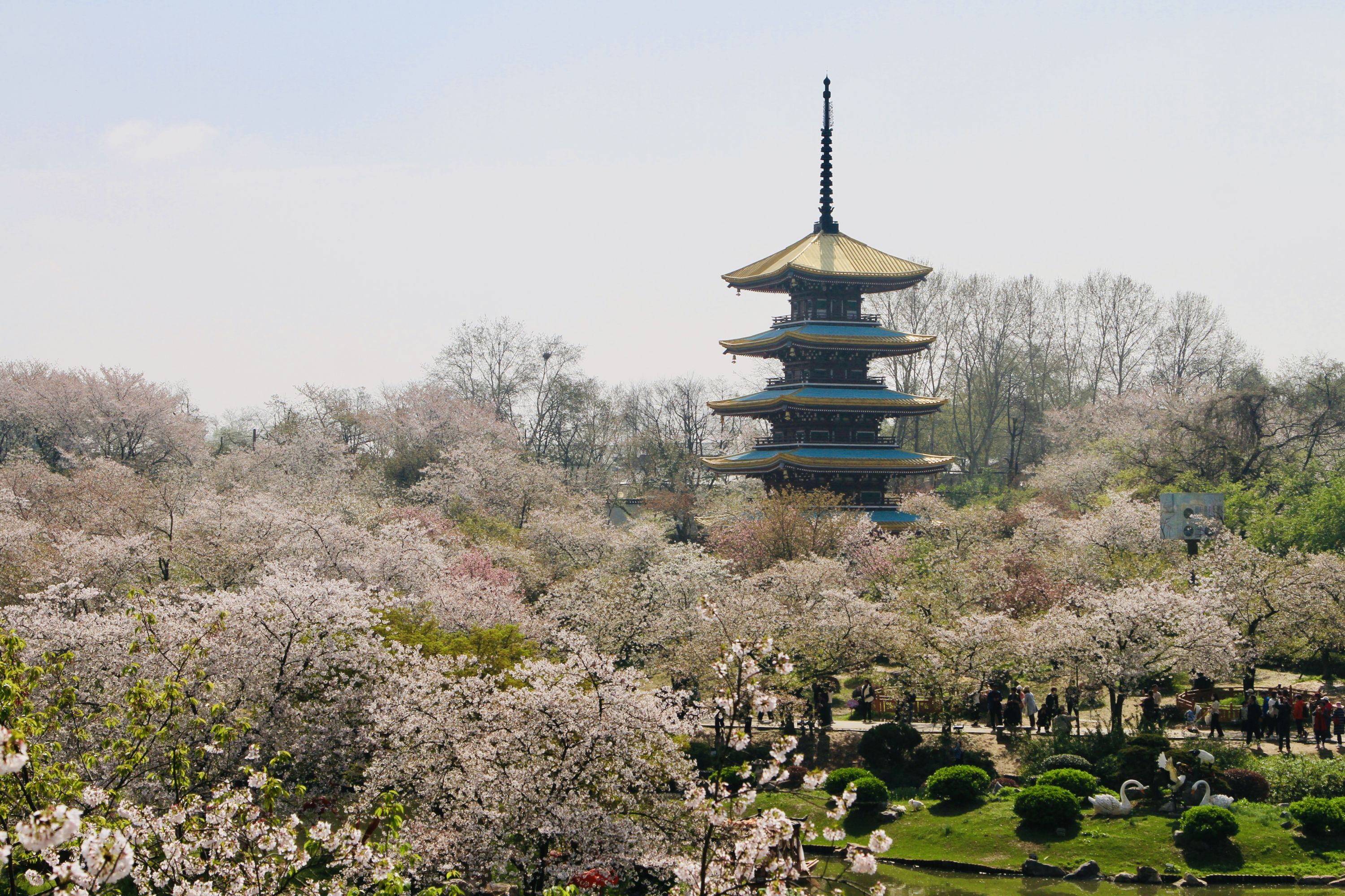 东湖樱花园,中樱大面积绽放。赵丽 摄