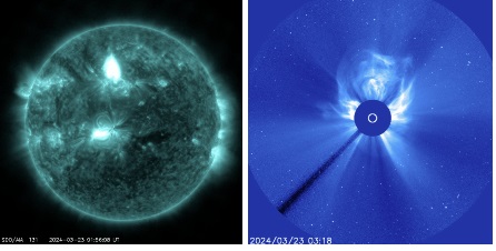 2024年3月23日SOHO卫星观测到的耀斑与日冕物质抛射。(图片来源:中科院空间环境预报中心)
