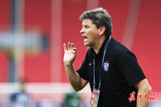 武汉三镇队主教练场外指挥。长江日报记者喻志勇 摄