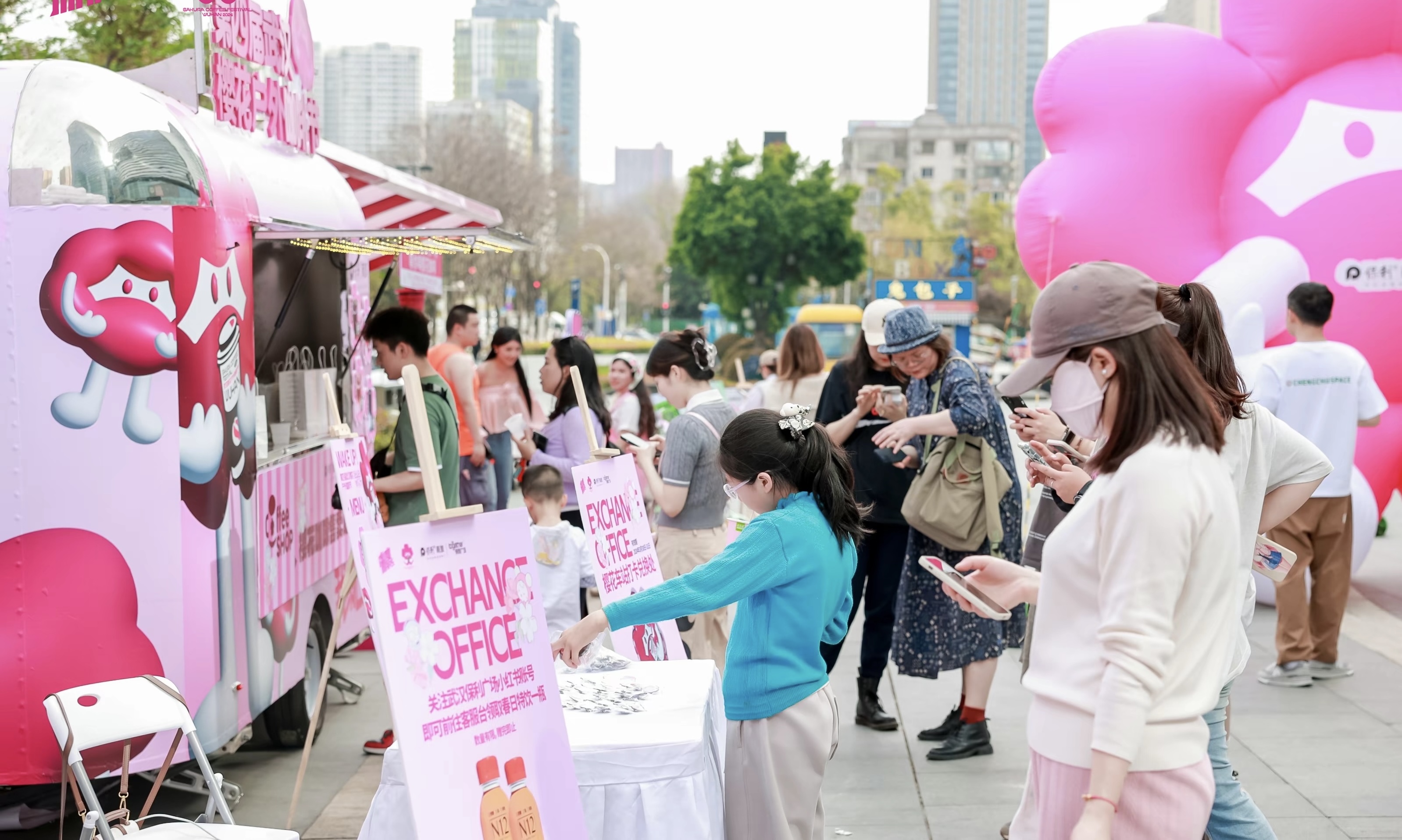 粉色樱花咖啡车前,排起了长队。主办方供图