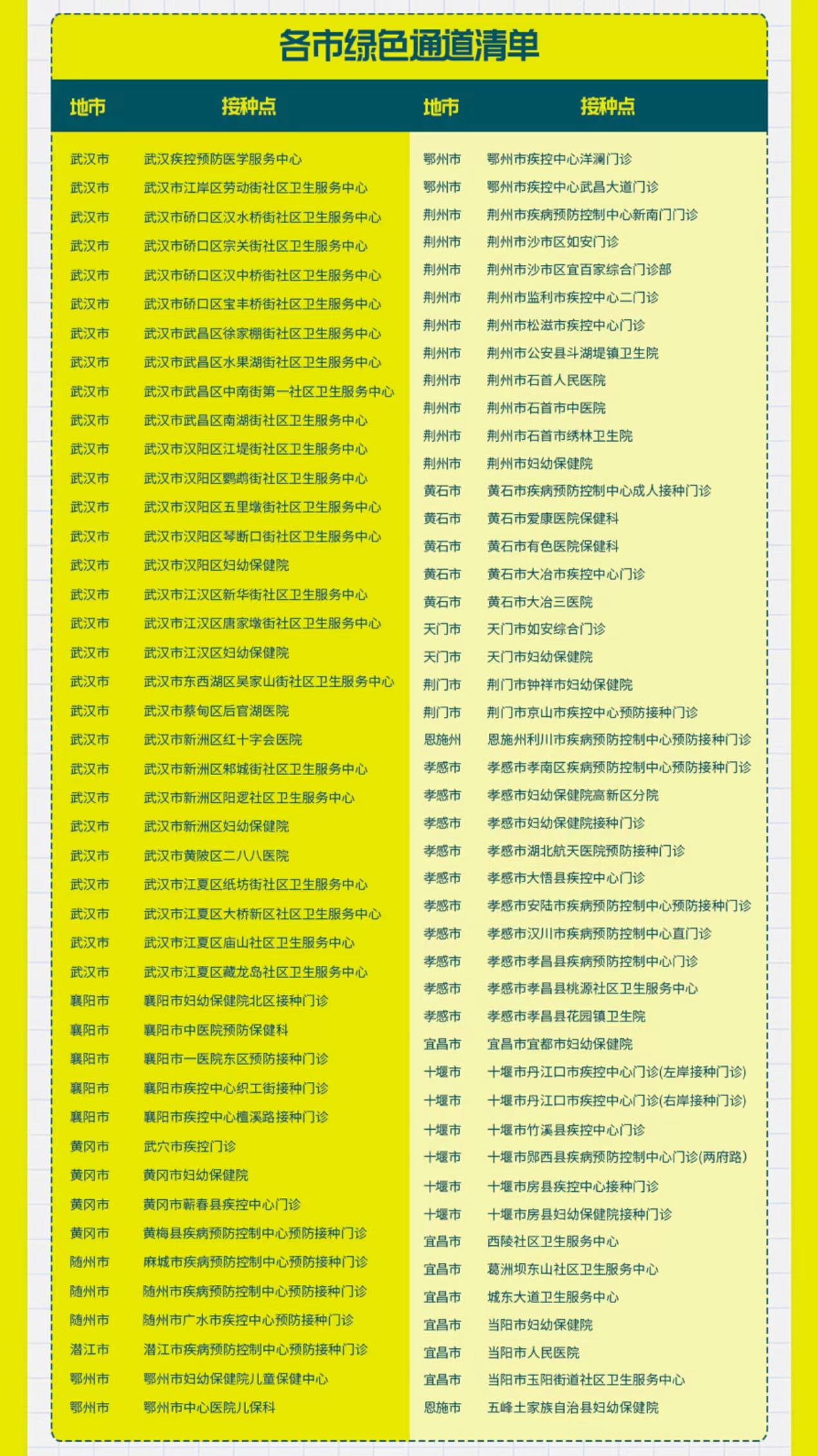 湖北省以下接种点已开通HPV疫苗接种“绿色通道”: