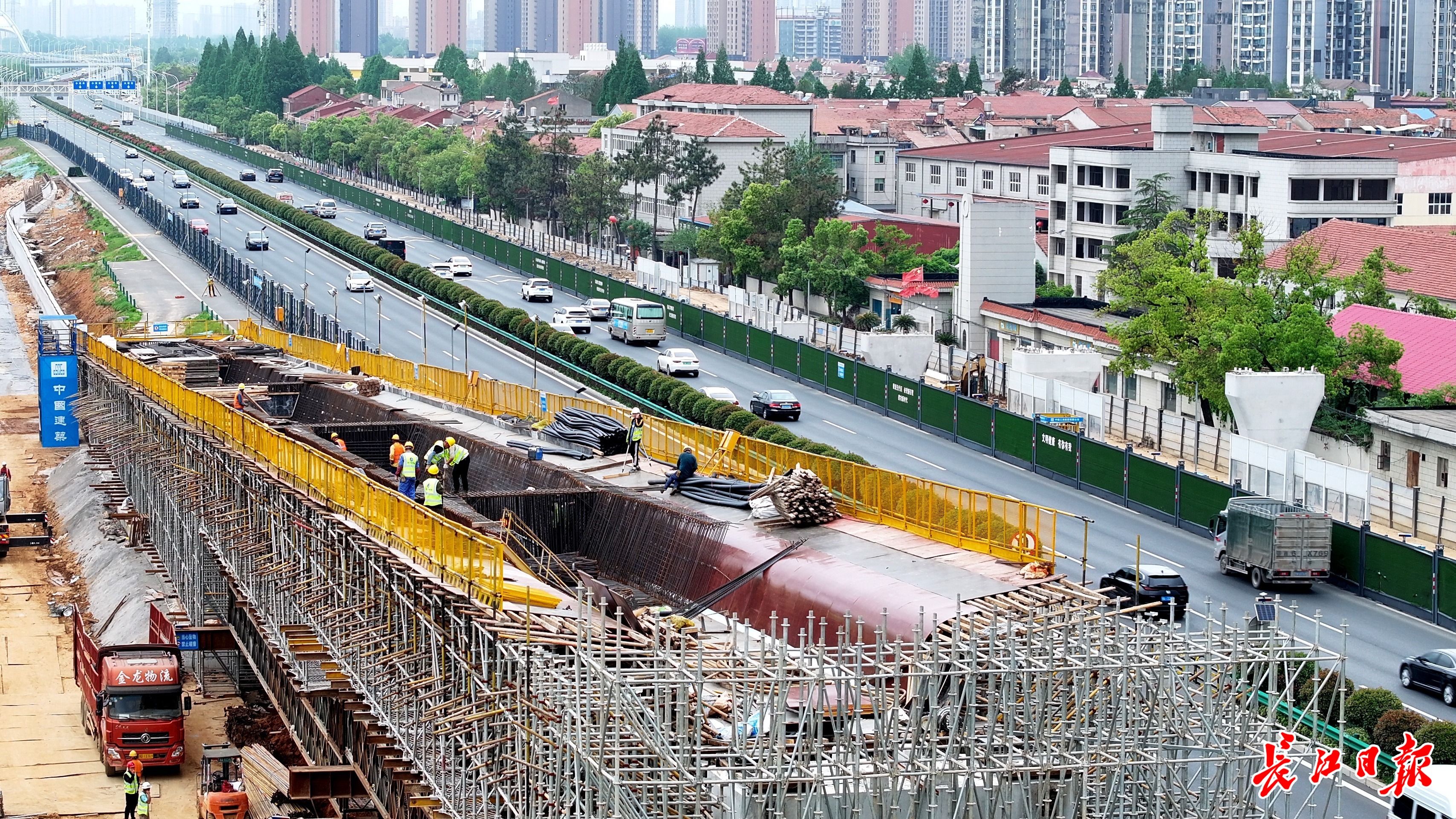 “为了抢抓汛期前施工黄金期,我们在四条匝道上投入20余台机械设备,100余名工人分成2个班次,昼夜抢抓工期,与长江汛期赛跑,全力冲刺现浇箱梁施工。”李英浩满怀信心告诉记者,南侧2条匝道预计在6月底全部完工。