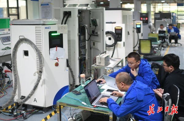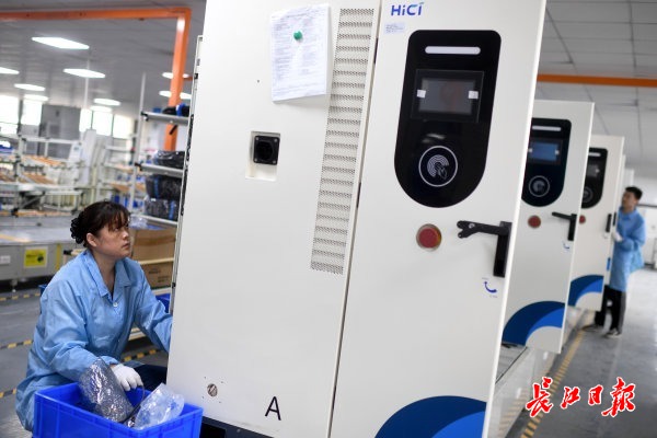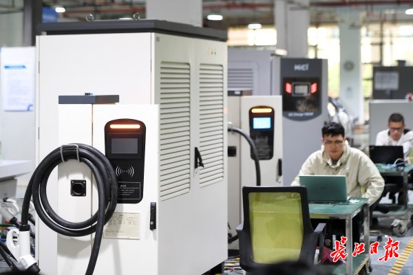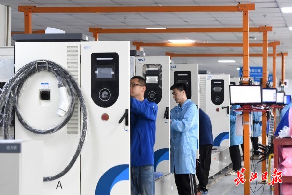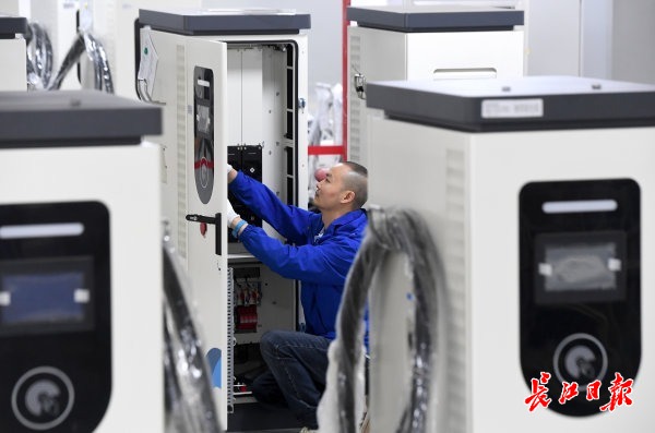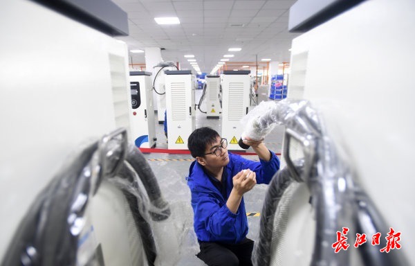 4月17日,记者在武汉东湖高新区综合保税区看到,武汉合智数字能源技术有限公司(简称“合智数字能源”)产线上工人们忙碌不已。今年以来,该企业生产的海外版充电桩一直供不应求,每生产一批立马就发往海外市场。