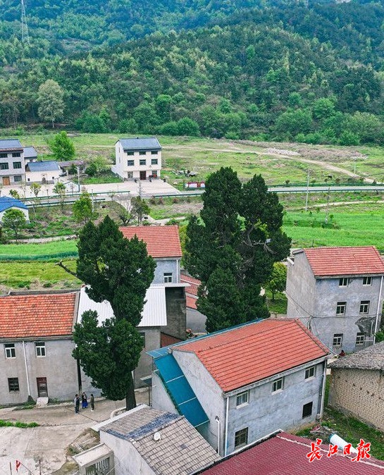 “从小到大,感觉它总是这么高这么大。”83岁的阮观梅说,她在塆里长大,小时候长辈就告诉她,这两株古树是村里的“平安树”,不能伤害它们,要好好保护。如今,除了每年来人为古树体检,村民还会自发为它们除草浇水。