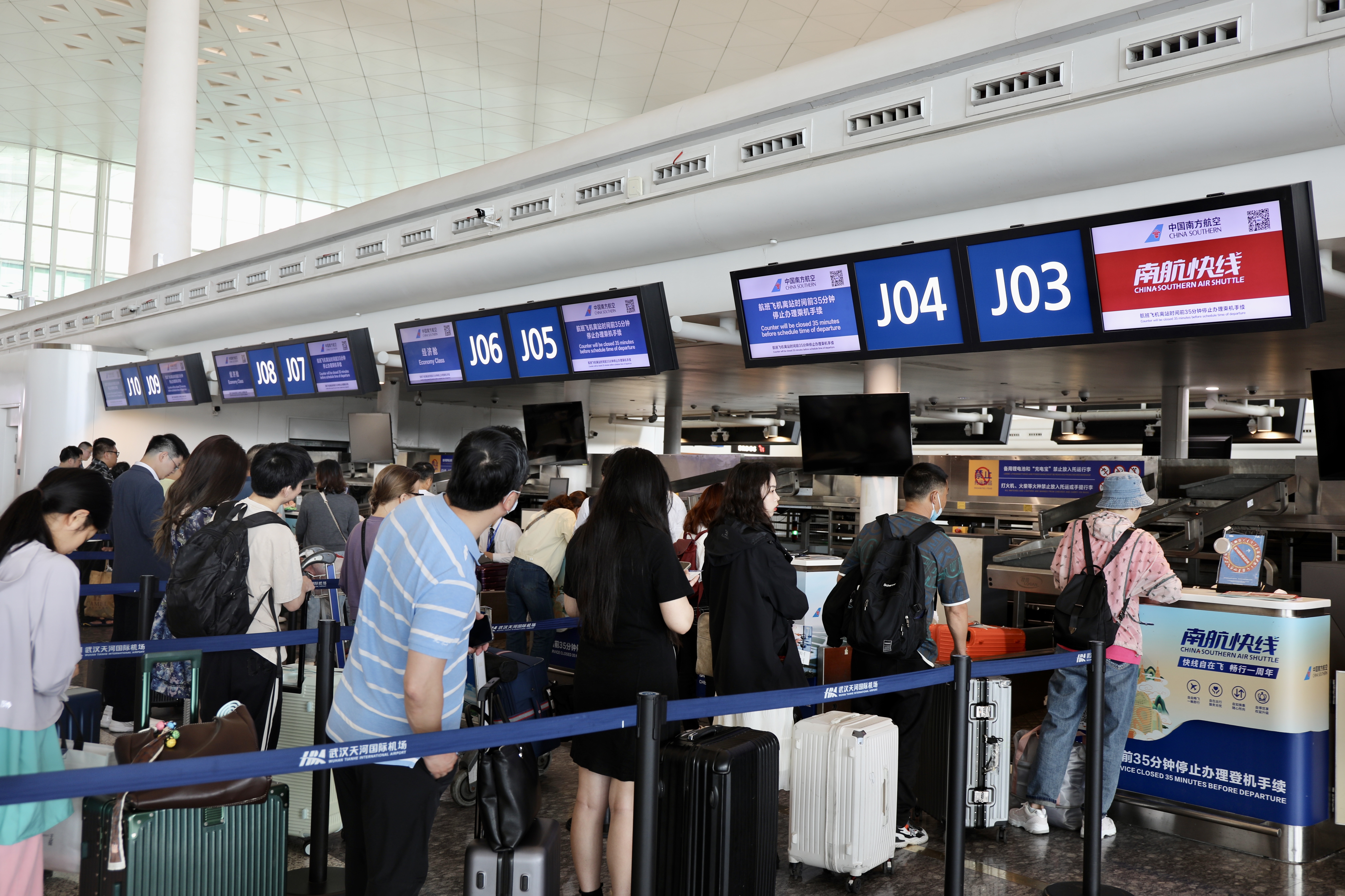 为了满足旅客假日出行需求,五一期间南航拟增加武汉至汕头、惠州、广州等方向班次,计划在武汉至深圳、天津、成都天府等航班上进行宽体机投放,全面提升旅客出行体验感。