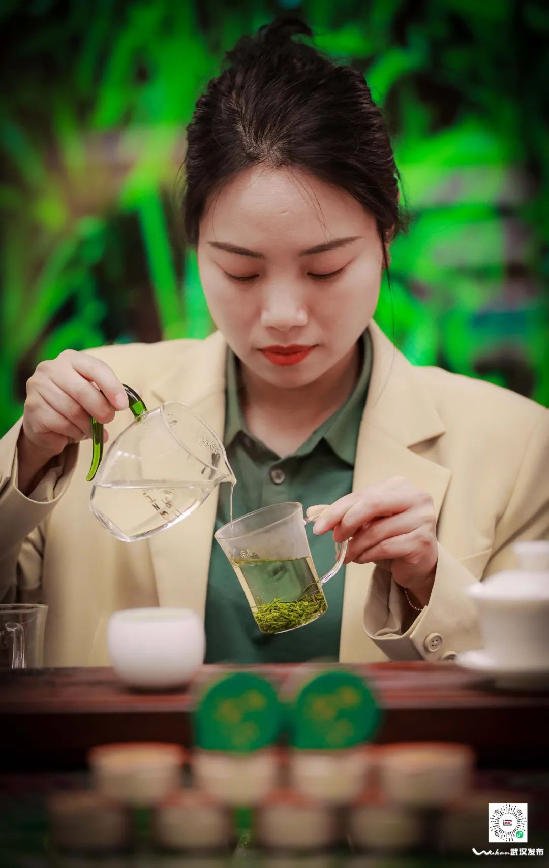 现场冲泡恩施玉露。