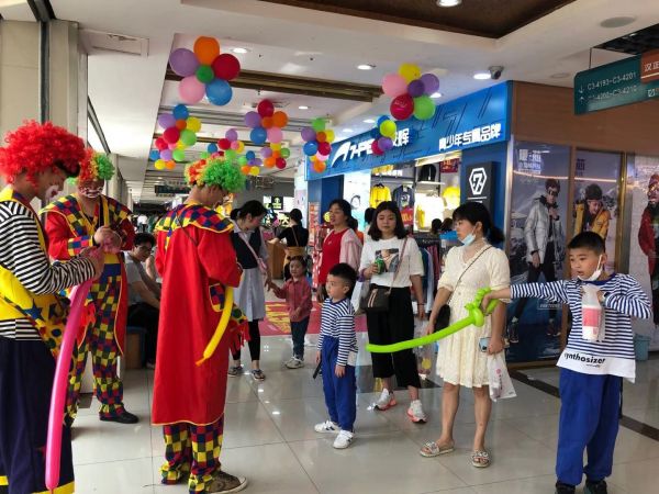 1日,长江日报记者走进汉口北品牌服装城,三五成群的萌趣小丑巡游嬉闹市场间,现场制作派发造型各异的气球,引得不少儿童驻足观看、欢乐互动。