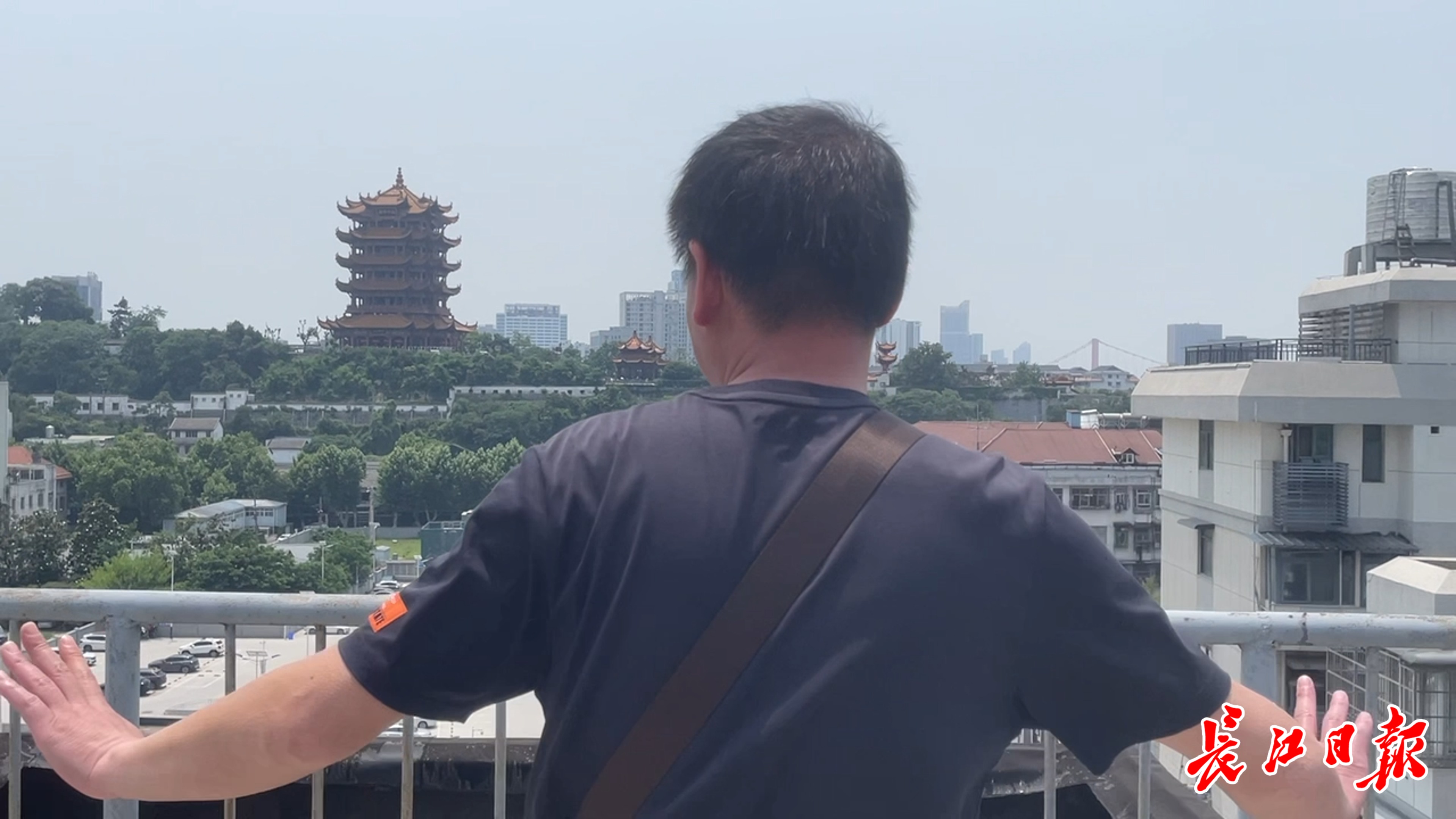 16栋3楼到4楼之间的楼道处,也是观赏黄鹤楼的绝佳拍摄点。 记者尹勤兵 摄