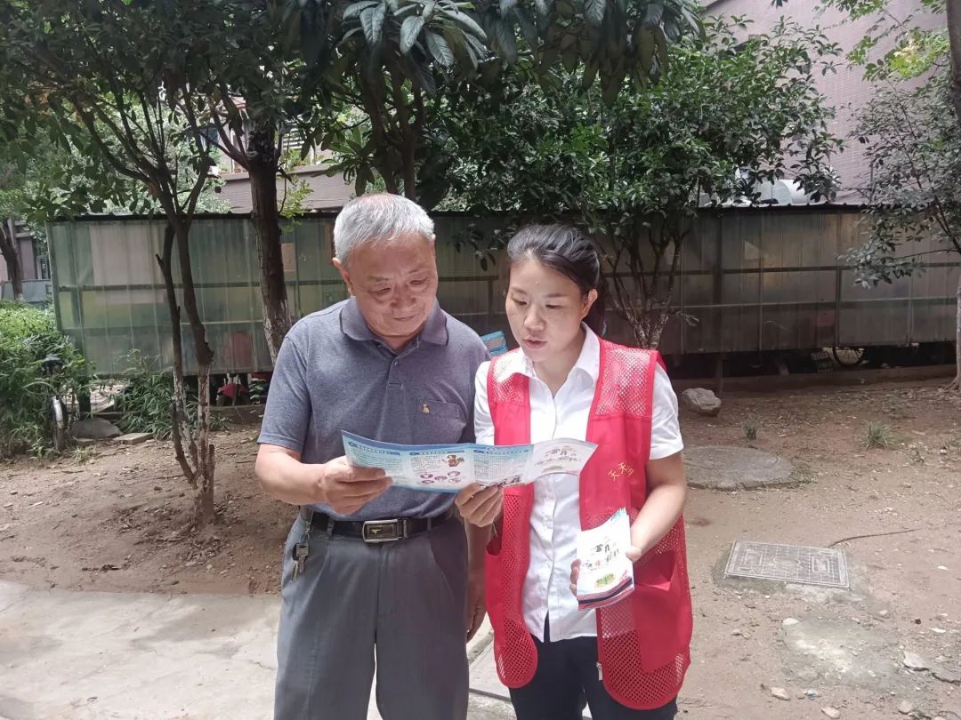 青和居社区青年网格员向老年居民宣讲政策。青和居社区供图