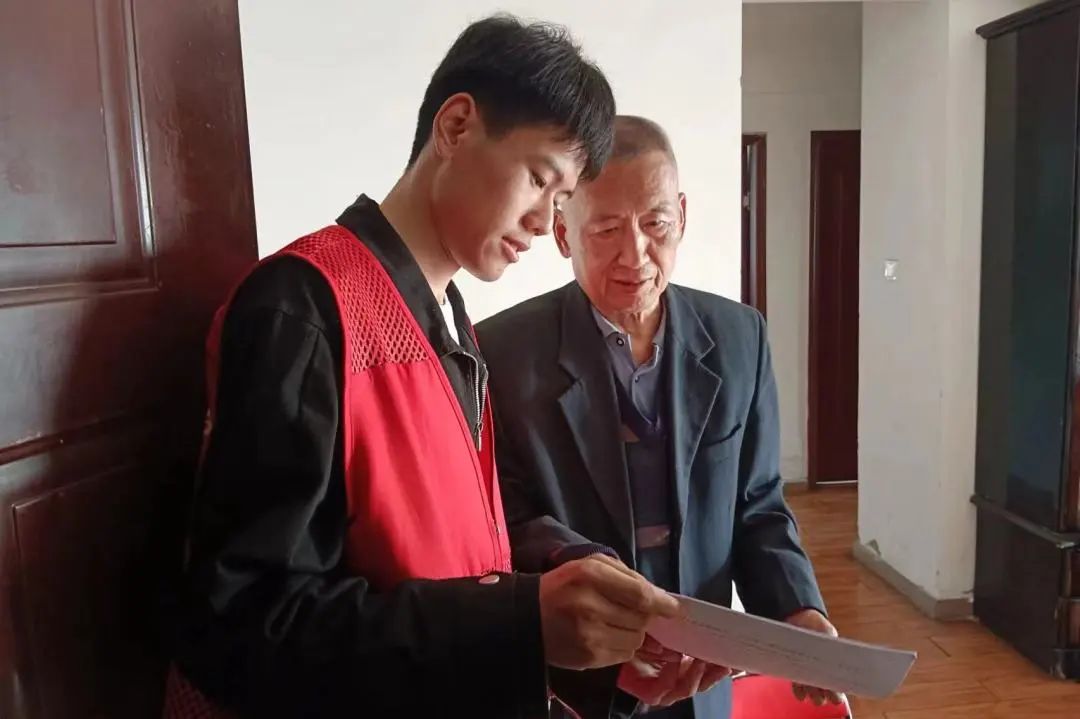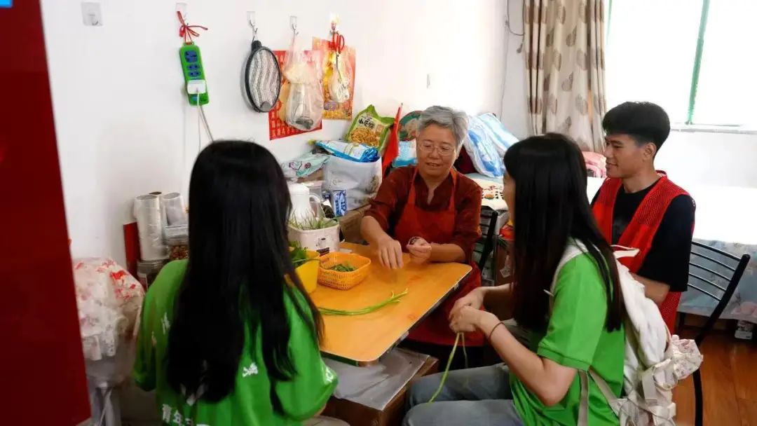 宣讲结束后,他们又跟着社区青年干事谢玉姣、谢志杰,分头上门探望楼栋里的一些高龄独居、行动不便的老人,为他们打扫房间卫生、代购药品等。看着这些比自己孙辈还小的00后们在屋里认认真真擦桌子、扫地拖地,中风多年、卧病在床的80多岁兰爷爷眼眶湿润了。