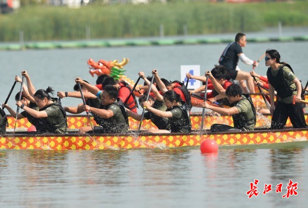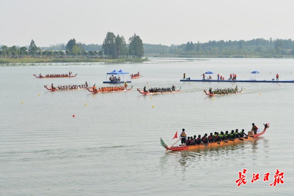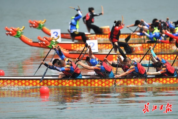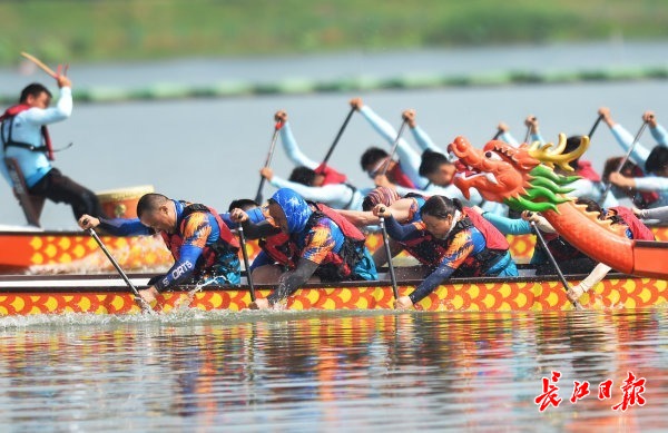 5月25日,“甲辰龙腾 盛世中华”2024年全国龙舟大联动活动暨湖北省龙舟公开赛(武汉东西湖站)在杜公湖国家湿地公园拉开序幕。上午9时,伴随着激情的擂鼓声,一组组参赛龙舟先后出发,响亮的号子和阵阵加油声不绝于耳,龙舟队员挥桨斩浪,全力以赴。据了解,此次比赛共有全省45支龙舟队伍近千名运动员参赛,在5月25日、26日两天,分别进行多个组别和项目的龙舟竞渡。比赛期间东西湖区15支队伍参加地方组22人龙舟500米直道竞速。5月26日上午9时,比赛现场将进行开幕式龙舟巡游,举行披红点睛仪式,安排有桨板表演。届时,杜公湖岸边还将燃起绚丽的冷焰火,欢迎各地游客前往欣赏游玩。