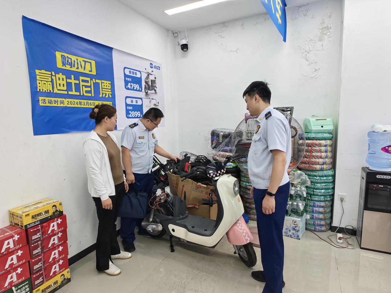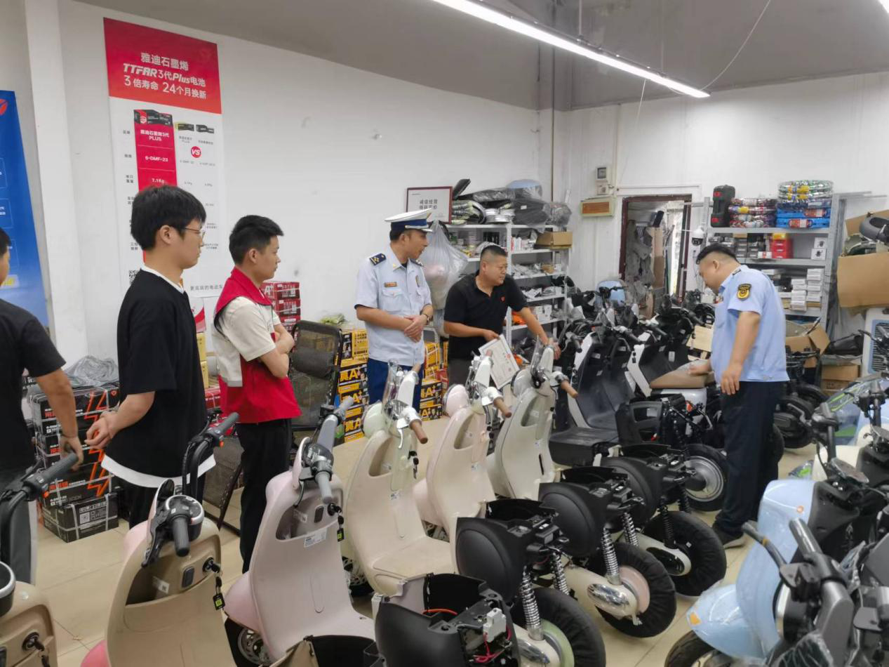 在武汉东湖新技术开发区,检查组先后前往居民楼周边电动自行车经营门店和维修店开展检查。针对检查过程中发现的问题,检查组对商家说明其危害后,责令商家立即进行整改。