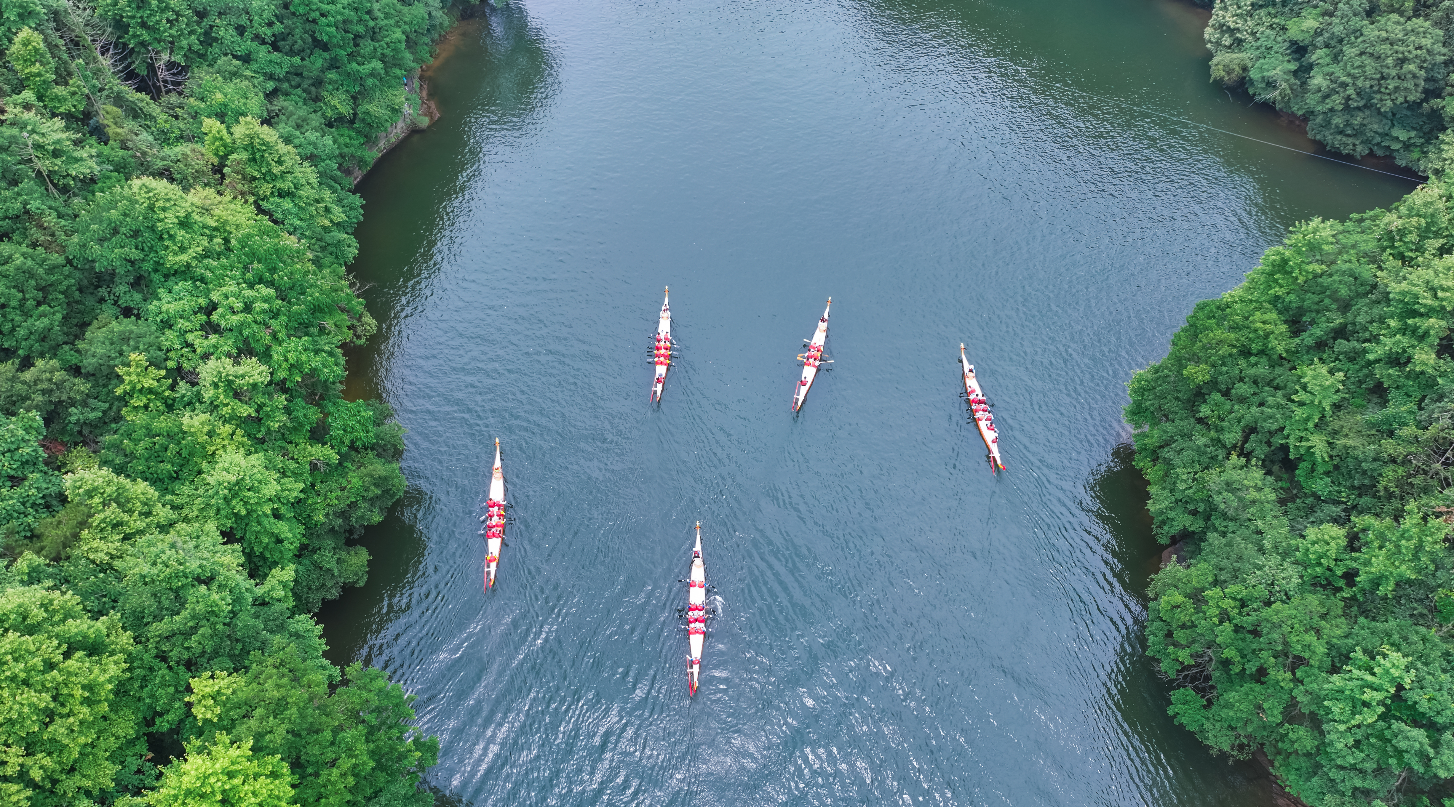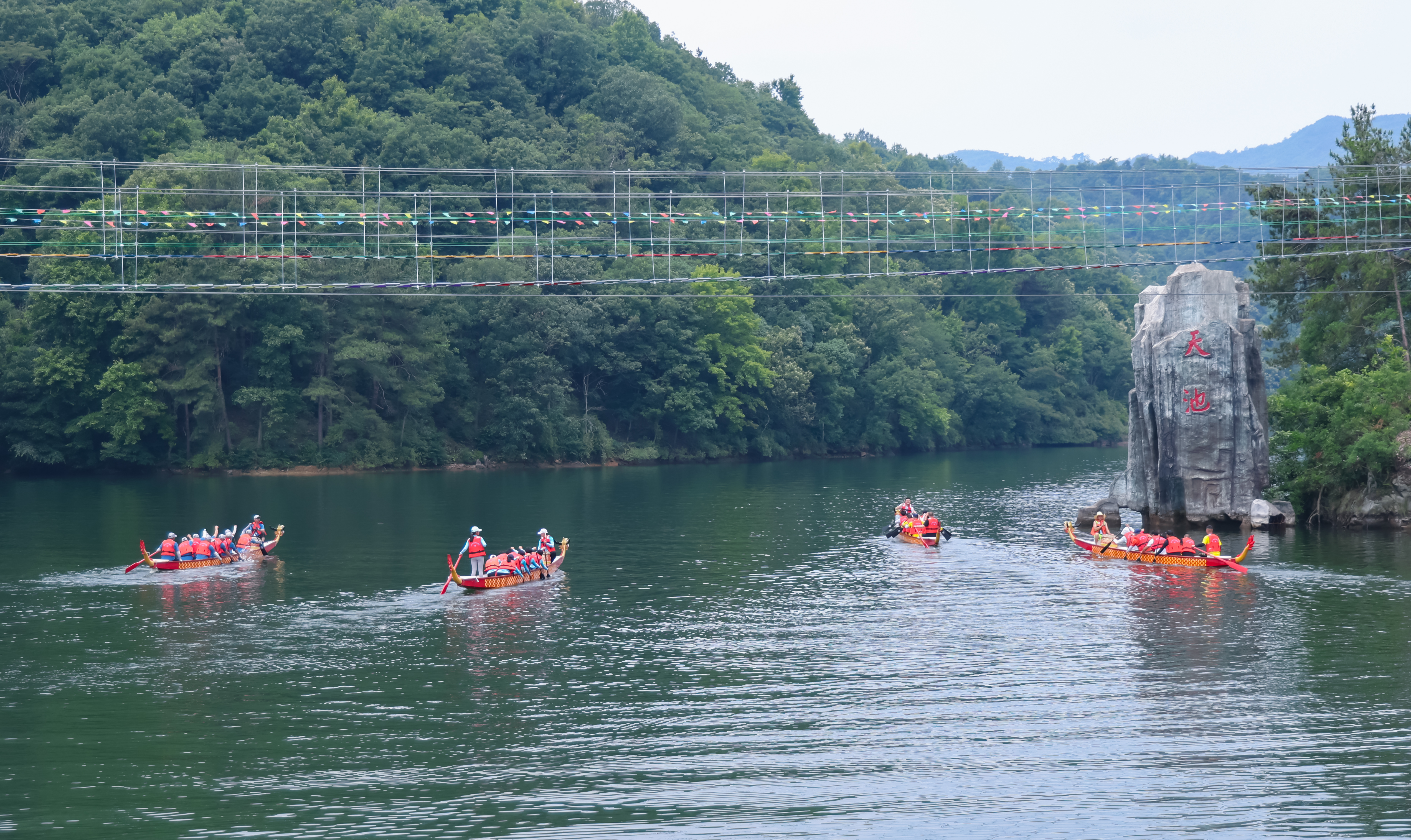 龙舟赛在黄陂木兰天池绿水青山间开启。