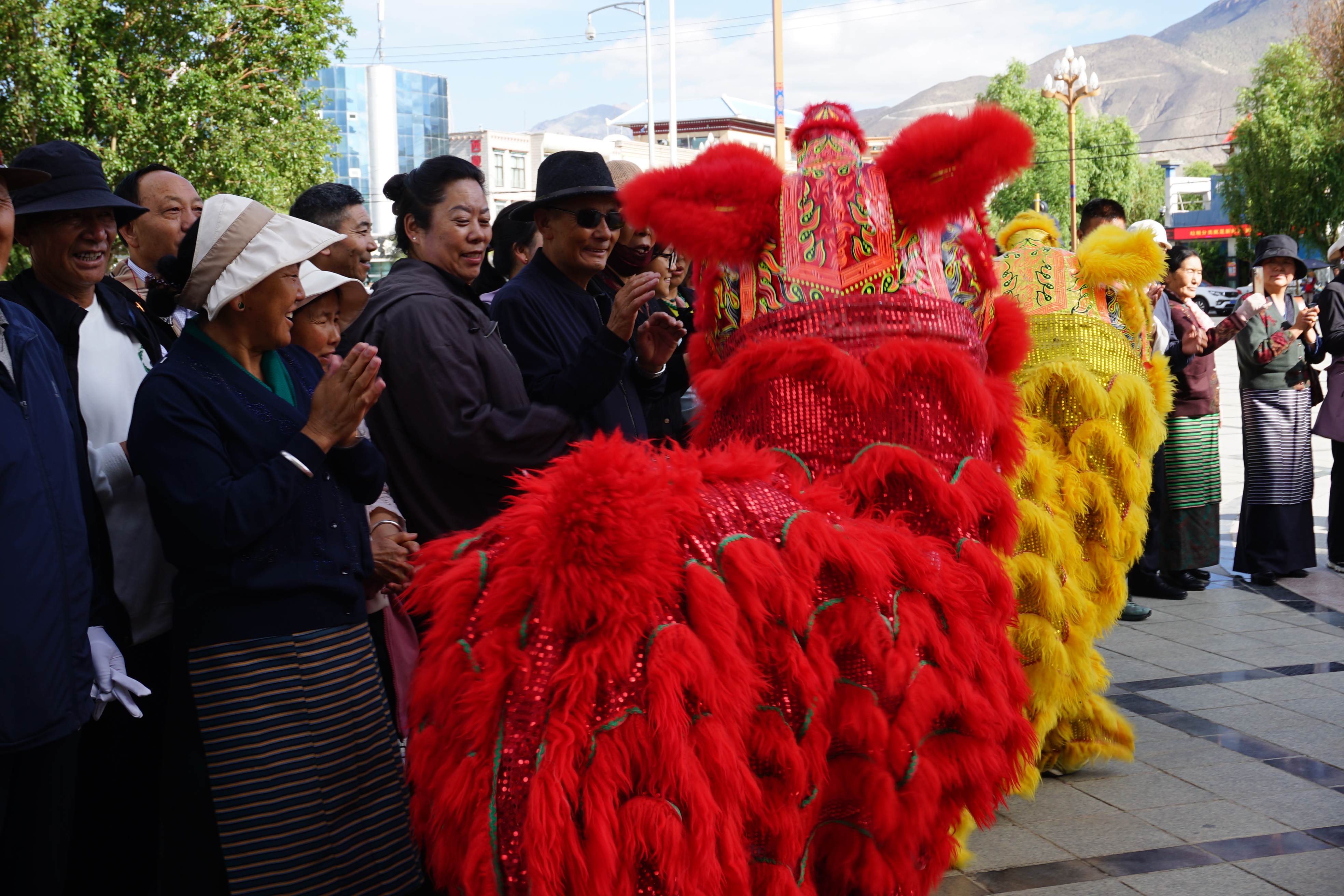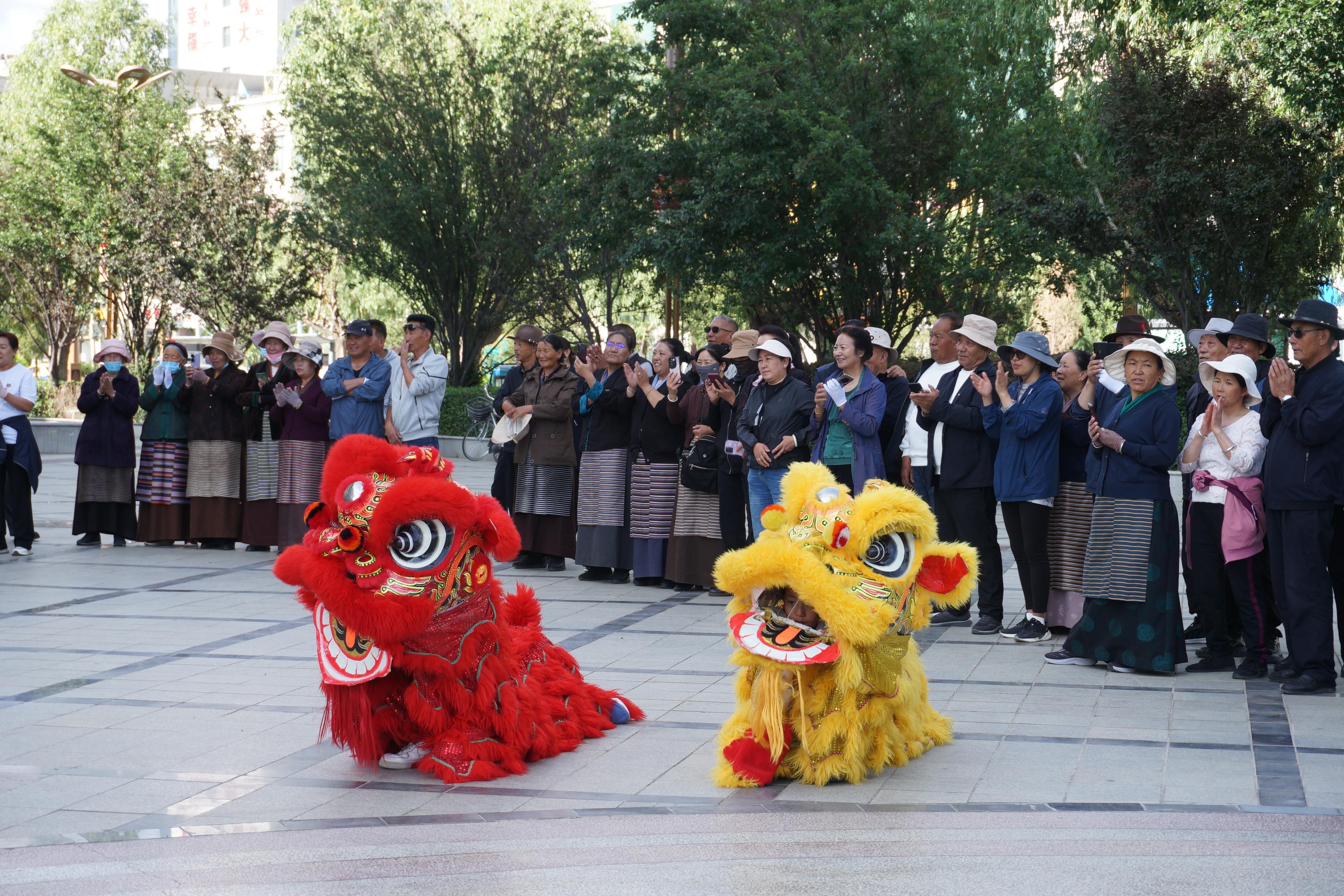 长江日报大武汉客户端6月10日讯(记者陈晓彤 通讯员李少康)红狮腾跃,金龙翩舞,6月10日上午10时,在西藏山南市中心的雅砻剧院广场,一场精彩的舞龙舞狮秀吸引众多市民驻足围观。