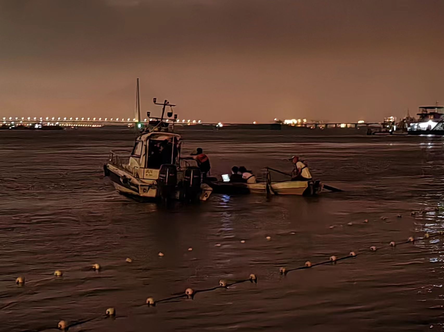 据此,现场指挥员一方面派出船只持续盯守,一方面迅速组织围网和操作人员。终于在16时50分,再次发现鳄鱼踪迹,并拍摄到露出水面的鳄鱼头部画面。指挥中心经过研判,最终锁定鳄鱼所在位置。