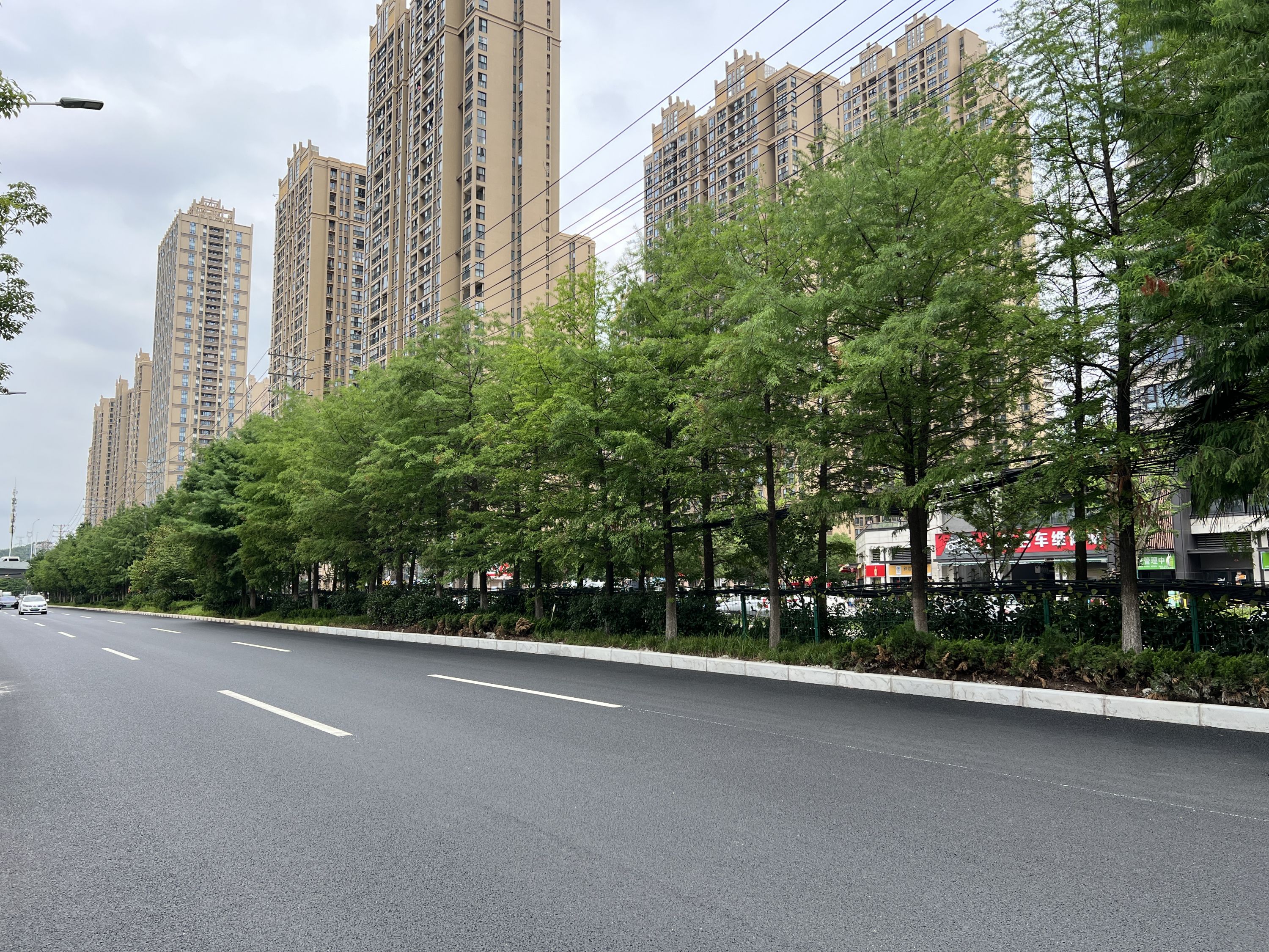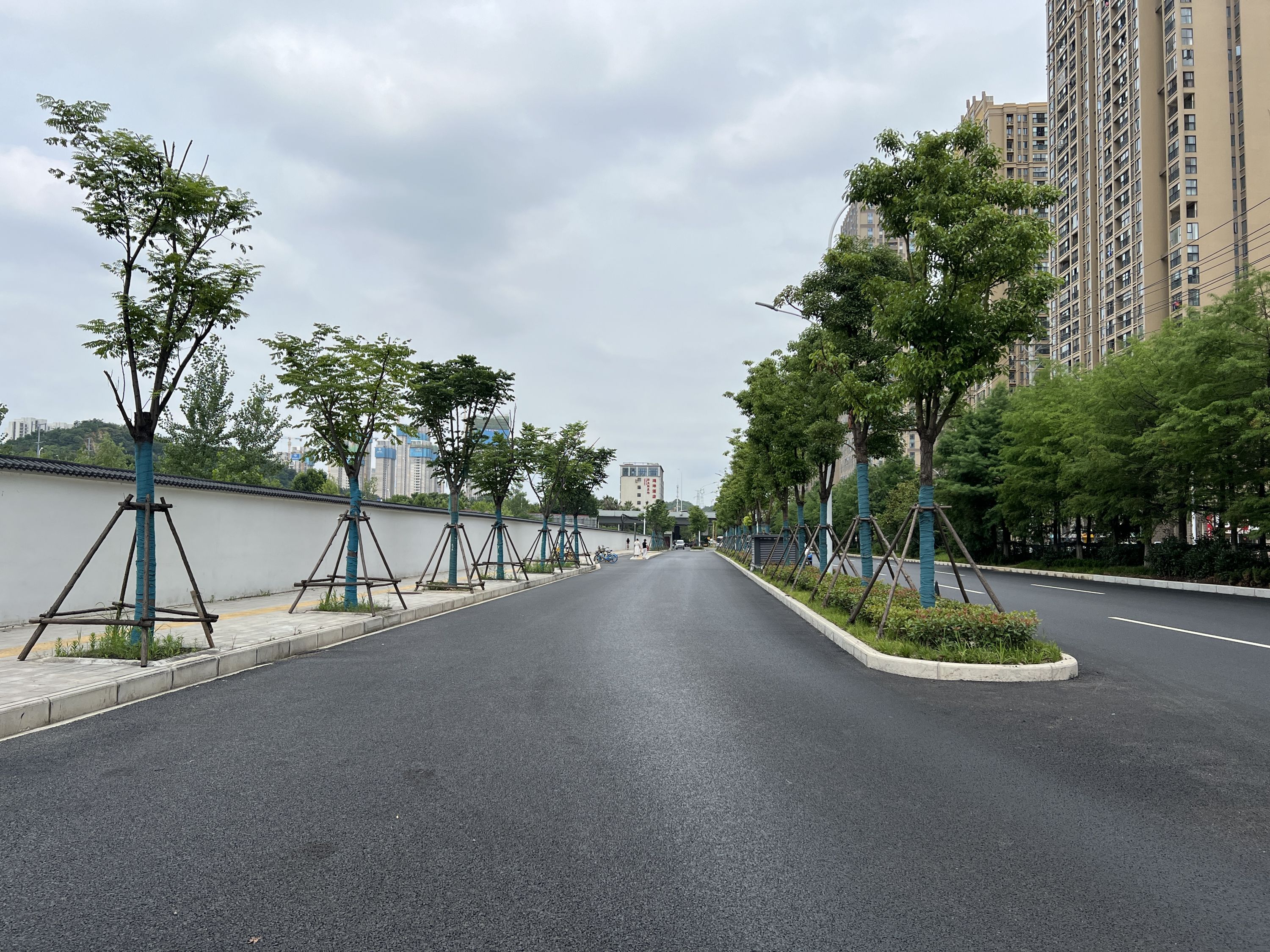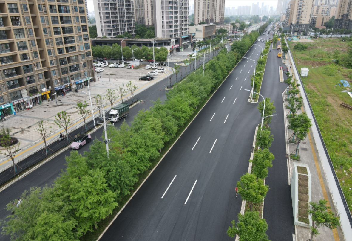 6月28日,记者走进位于汉阳区的琴台大道(三环线—二环线)工程项目现场看到,整个路面主体建设已完工,道路宽55米—65米,双向6—8车道,原有杂乱的电线杆和线缆、破损的路面都已看不到,原来打着“补丁”的水泥路面拓宽变成了整洁平坦刷黑的沥青道路,车走上去一路平顺宽敞,再无坑坑洼洼之感,道路两边是崭新的路灯、交通指示牌和郁郁葱葱的行道树。