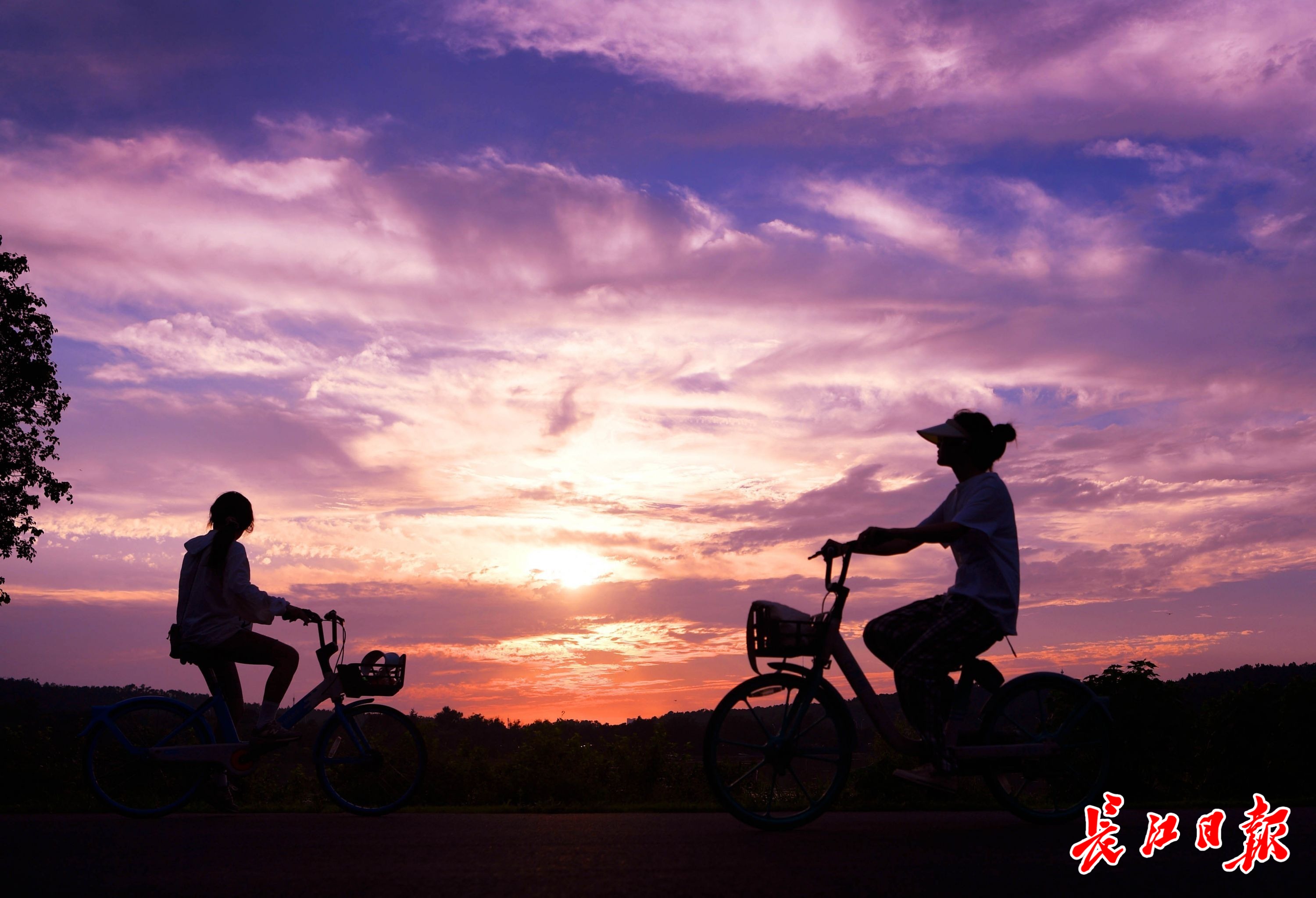 6月30日,晚霞映照东湖,吸引在绿道骑行的市民,停下来拍照。 (资料图)
