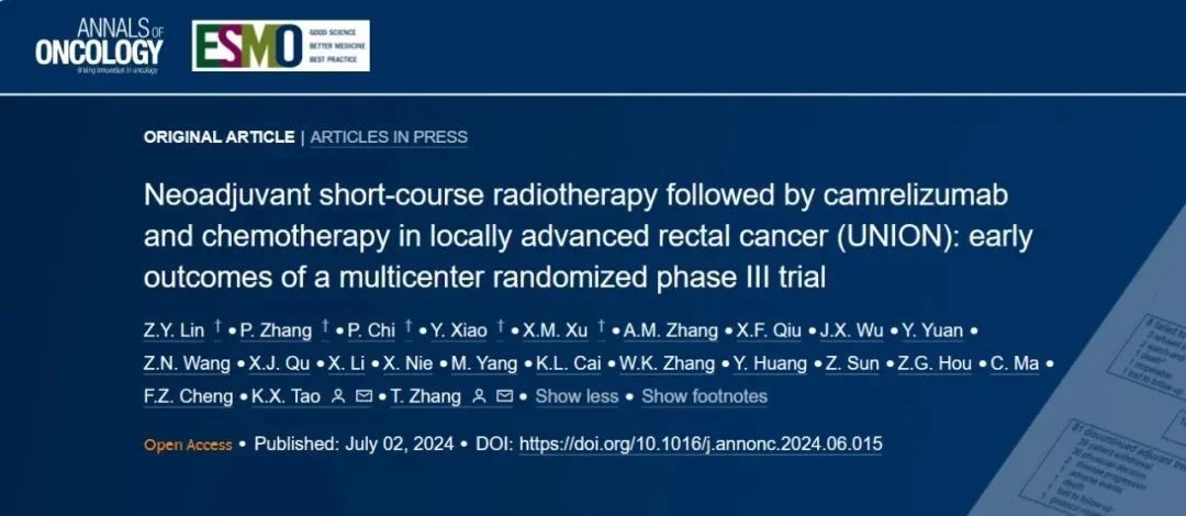 针对传统治疗方案的局限性,2021年,协和医院胃肠肿瘤MDT张涛、陶凯雄教授团队基于Ⅱ期临床研究创新性地提出短程放疗、序贯化免、联合全新新辅助治疗模式(简称UNION模式),相关研究成果发表在国际肿瘤学权威期刊《The Journal for ImmunoTherapy of Cancer》。随后,该治疗模式相继被2023及2024年CSCO直肠癌诊疗指南引用,成为指导中国临床实践的重要参考。2024年,该团队发布了全球首个短程放疗序贯化免新辅助治疗局部晚期直肠癌的全国多中心随机对照Ⅲ期研究结果,为直肠癌患者带来了新的希望。
